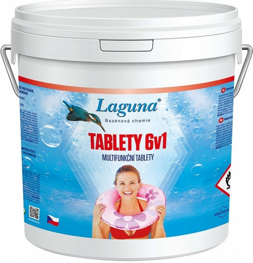 Multifunkční tablety (200g tablety) zajišťují dezinfekci, vločkování, proti řasám, stabilizace chloru, projasňovač a stabilizace tvrdosti vody.Laguna 6v1 tablety je moderní víceúčelový