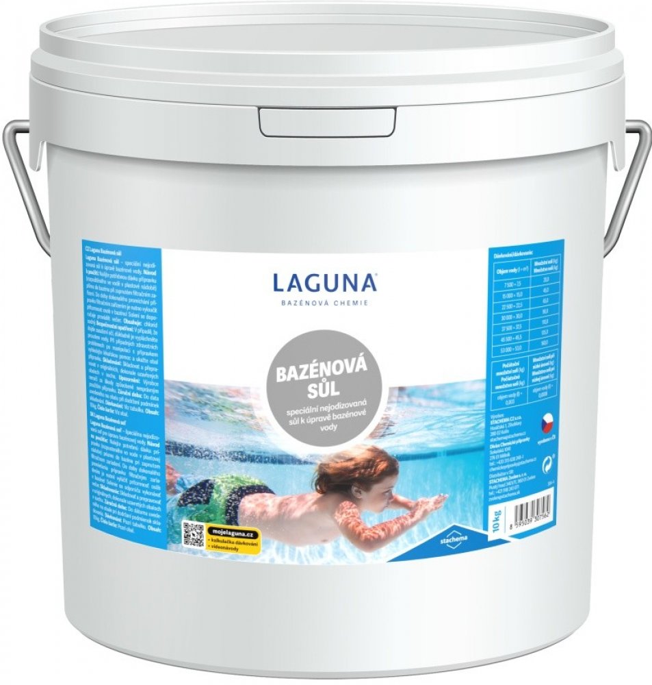 Speciální nejodizovaná bazénová sůl. Úprava bazénové vody pomocí soli. Potřebnou dávku soli (granulát rozpuštěný ve vodě v plastové nádobě) nalijte přímo do bazénu při zapnutém filtračním zařízení. Solení se doporučuje provádět večer.