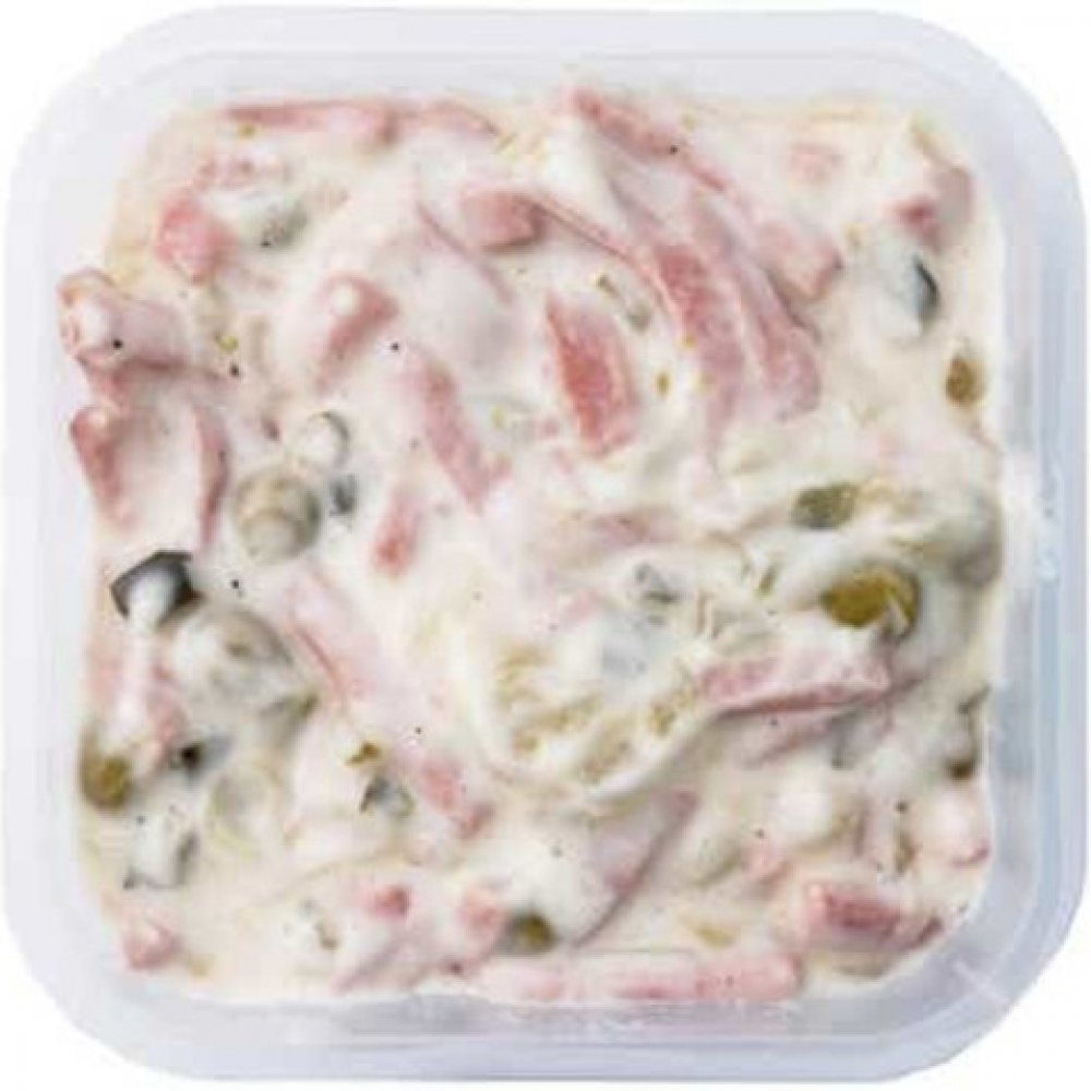-- Pochoutkový salát se salámem junior Majonézový salát ze salámu junior a hrášku, sladkokyselé chuti.