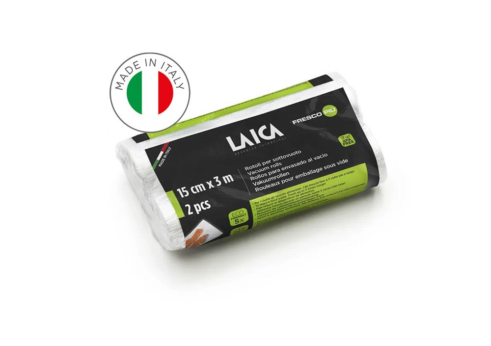 Vakuovací folie jsou vhodné pro použití do všech svářeček fólií potravin na trhu. Velikost si jednoduše přizpůsobíte podle toho, co zrovna chcete vakuovat. Jsou vyrobeny z bezpečného materiálu 100% bez BPA a vhodné i na sous vide vaření. Fólie do vakuovačky jsou nejlepší volbou pro dlouhodobé skladování, obzvláště v mrazáku. Na uskladněných potravinách se netvoří námraza, a tím pádem se nemění chuť, barva ani struktura. Potraviny ve vakuu jsou chráněny před vnějšími vlivy, zachovávají si svou kvalitu a prodlužuje se jejich životnost. Hlavní benefity fólie do vakuovačky Laica? Šířka 15 cm Čtyřvrstvé s tloušťkou 90 μm Vhodné na Sous Vide vaření až 100 °C (do 15 min), pro vaření do 70 °C (do 6 hod) Ideální pro skladování potravin v ledničce, mrazáku nebo spíži Strukturovaný profil zapezpečuje vysokou odolnost Vyrobené z nezávadných materiálů 100% bez BPA Možnost opakovaného použití Vyrobeno v EU Folie do vakuovačky je odolná a pohlcuje pachy Vroubkovaný profil usnadňuje odsávání vzduchu, a zabezpečí tak kvalitní svár. Folie do vakuovačky je vyrobena z BPA free materiálu, proto neobsahuje žádný zdraví škodlivý Bisfenol A. Tento 4vrstvý materiál s tloušťkou 90 μm je velmi odolný vůči roztržení, je vhodný na opakované použití a nepropouští žádné pachy ani tekutiny. Vakuování je jednoduché řešení jak šetřit peníze Vakuováním potravin udržíte jejich čerstvost a vynikající nutriční hodnotu až 4× déle proti běžnému skladování. Vakuum zamezí oxidaci, šíření bakterií i plísní. Navíc zpomaluje tvorbu histaminu, takže je důležitou součástí přípravy jídla pro histaminiky. Vakuování je efektivní způsob, jak zorganizovat zásoby a eliminovat potravinový odpad. Šetří peníze, váš čas i zdraví. Co všechno můžeme vakuovat? Vakuovací folie si můžete libovolně nařezat, proto se hodí na všechny typy suchých i vlhkých potravin od masa přes vlašské ořechy až po čerstvé pečivo. Vakuování masa a zeleniny Vakuování marinovaného nebo naloženého masa Vakuování chleba (rohlíky, pečivo apod.) Vakuování suchých plodů (ořechy) Vakuování česneku Vakuování uzenin a klobás Vakuování kysaného zelí Vakuování ovoce (jahody, maliny, borůvky apod.) Vakuování již hotových jídel Vakuování cenností a cestovních dokladů Rozměr role 15 x 300 cm V balení 2 role 4 vrstvy Tloušťka 90 μm Materiál 100% bez BPA - Vnější vrstva POLYAMID PA (zajišťuje nepropustnost)