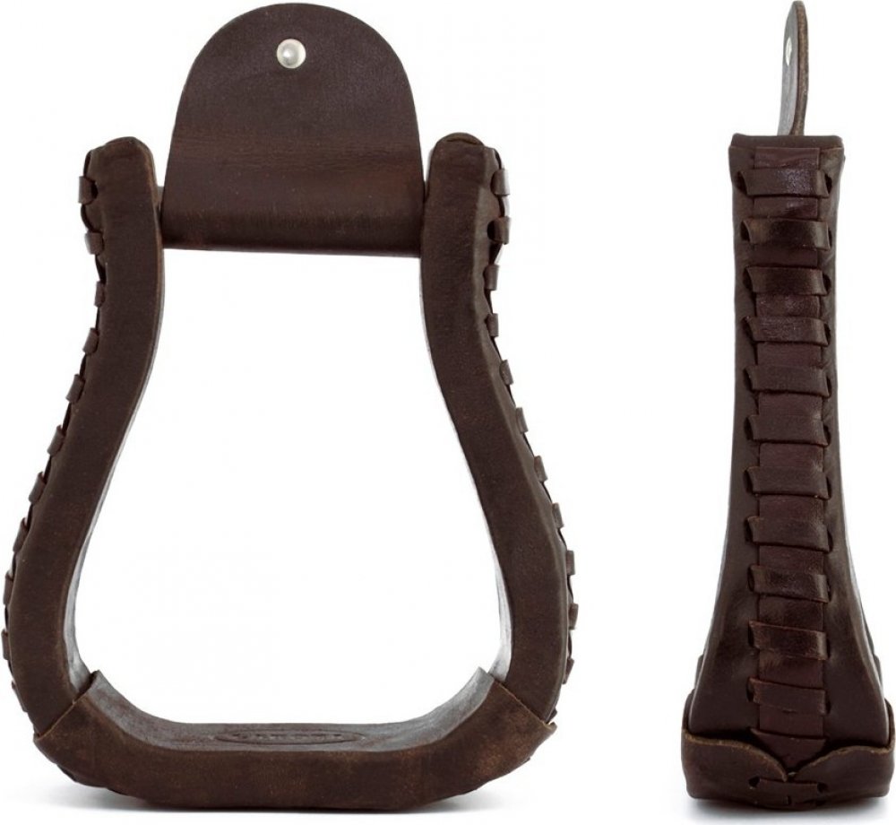Westernové třmeny Lakota, vyrobené z kvalitní kůže. Hodí se na každý typ westernového sedla. Třmeny jsou velmi odolné i při vysoké zátěži. V hnědé barvě a velikosti 11 cm. Vnitřní horní šířka třmenů je 6,5 cm. Dodávány v páru.