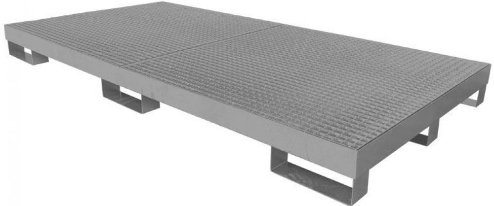 záchytná jímka s roštem pro skladování osmi, max. 200 litrových sudů