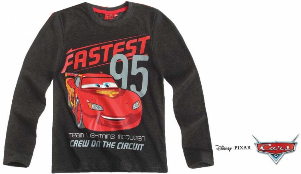 Cars mc queen na licenčním tričku udělá radost každému mladému chlapci, který zná tyto příběhy s červeným autíčkem. Tričko bavlněné je s dlouhým rukávem a barvy tmavě šedé. Tričko je vyrobeno z materiálu o gramáži 180g/m2.
