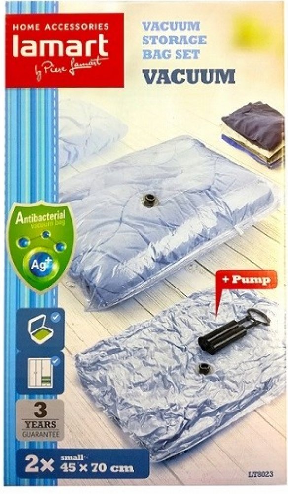 LT8023 VAK 2KS 45X70 +PUMP.VACUUM LAMART Úložný vak slouží jako ideální ochrana oděvů nebo textílie proti prachu, molům, vlhkosti nebo zápachu.