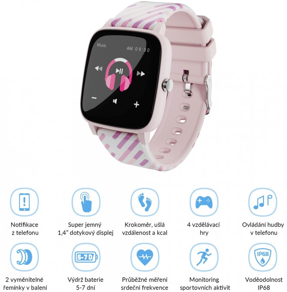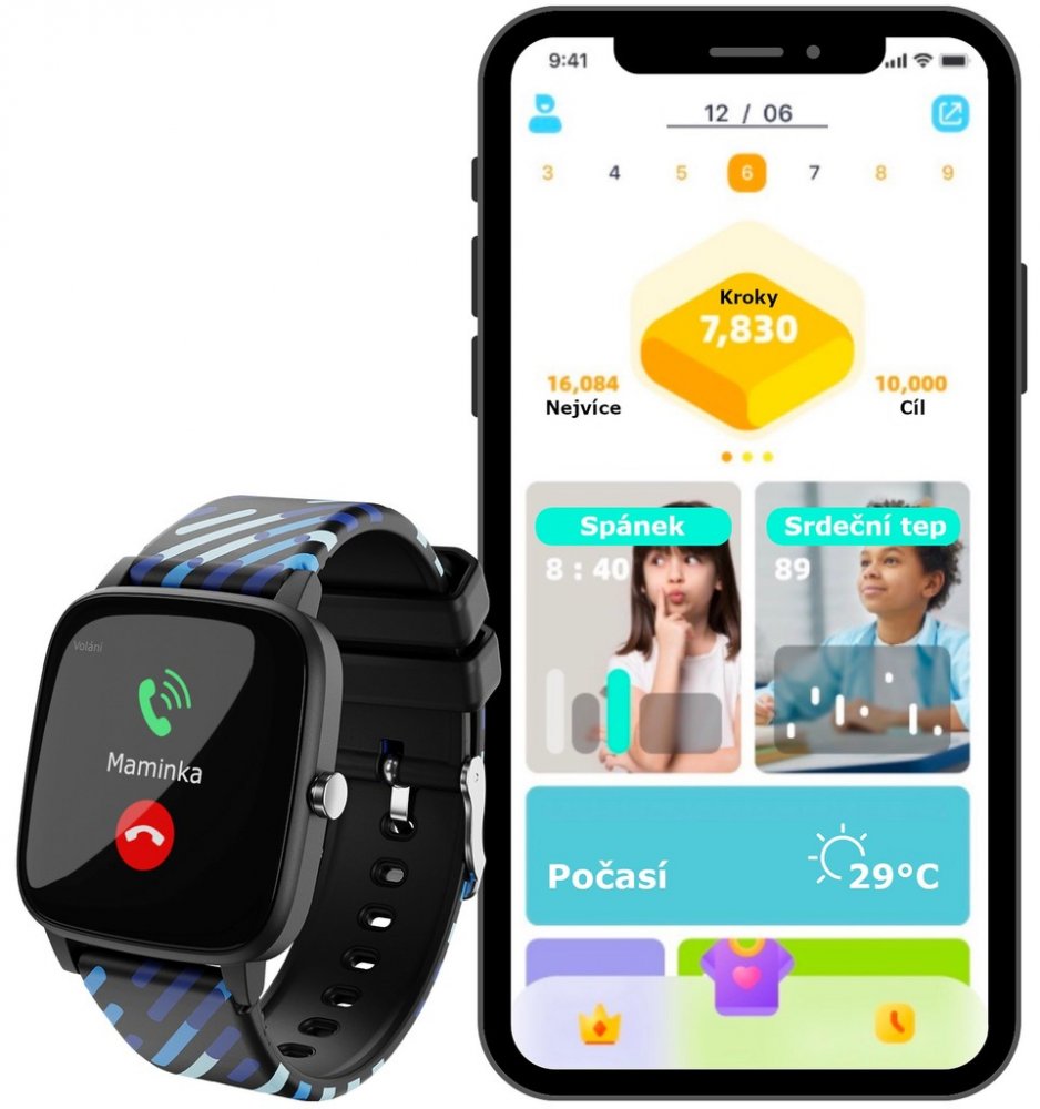 Prostředí hodinek a aplikace je kompletně v češtině, takže ovládání nebude pro dítě žádný problém. Hodinky lze přepnout do dalších jazyků a podporovat tak výuku angličtiny a dalších jazyků.