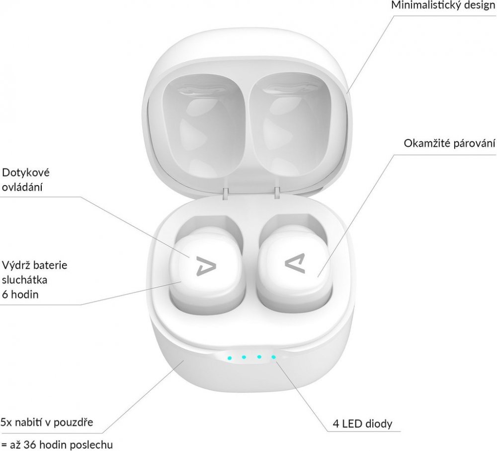 Pouzdro i sluchátka vynikají čistým designem a malými rozměry. Při poslechu se tak vyhneš nechtěné pozornosti a pouzdro vždycky s klidem strčíš do kapsy.