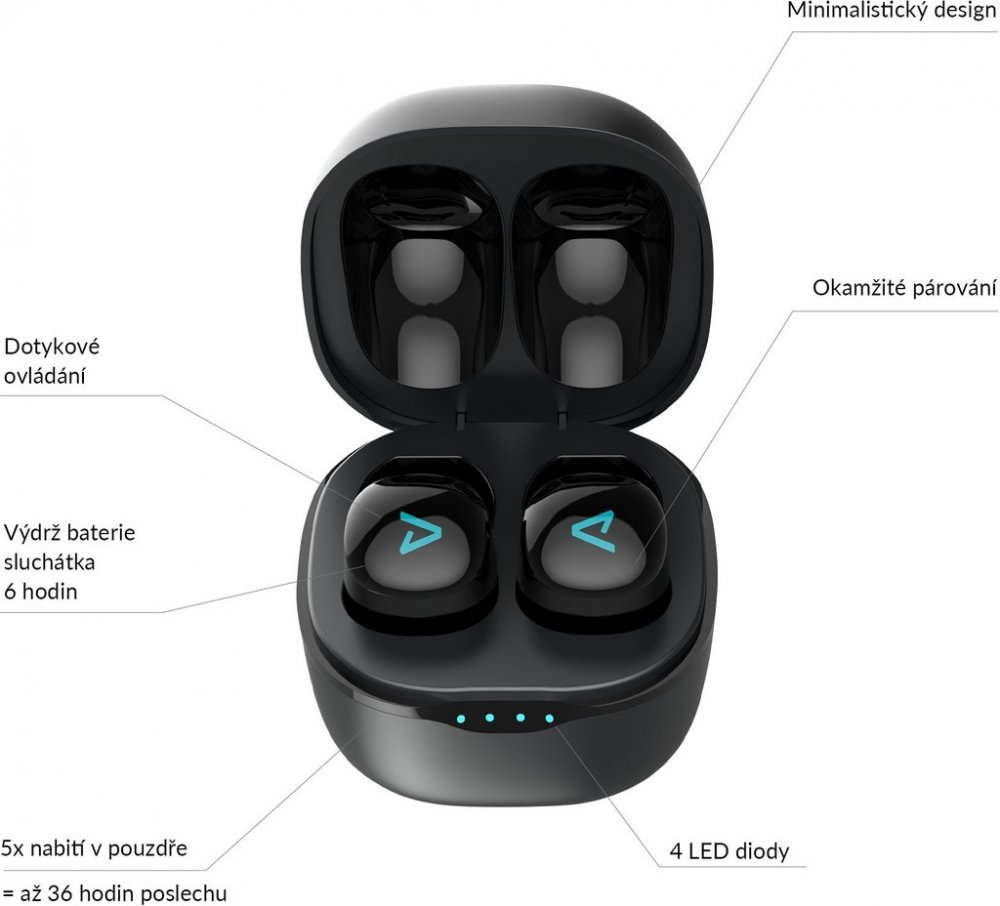 Špunty začnou hledat tvůj telefon nebo jiný zdroj, hned jak je vyndáš z pouzdra. Než si je nasadíš, už jsou ready hrát.
