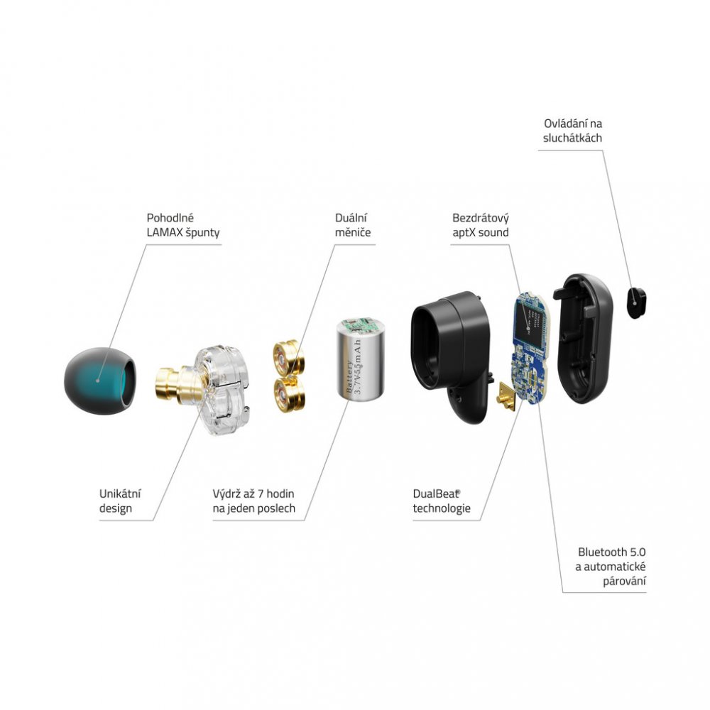 Perfektní poměr frekvencí pro každej track z tvýho playlistu potom řídí naše LAMAX DualBeat® technologie, která oba výstupy pošle na finální mix až do tvýho ucha. Navíc v top bezdrátový kvalitě, díky kodeku aptX, který boostuje přenosovou rychlost Bluetooth 5.0.