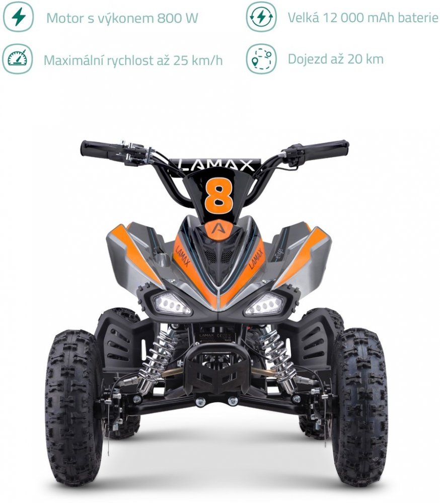 0.8 kW automatická 51 kg 1030 mm 670 mm 580 mm 710 mm ATV oranžová/černá 25 km/h Lamax kotoučové kotoučové