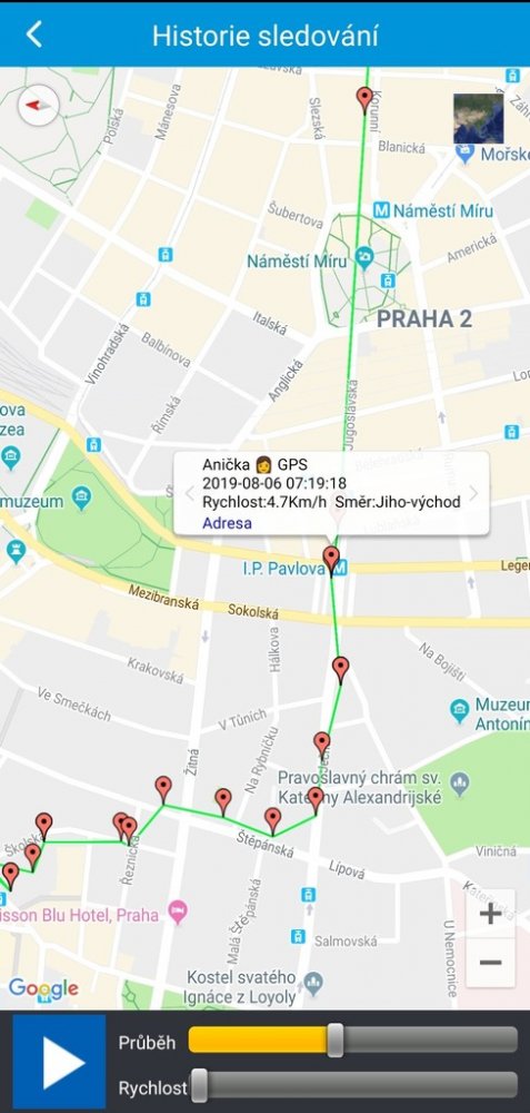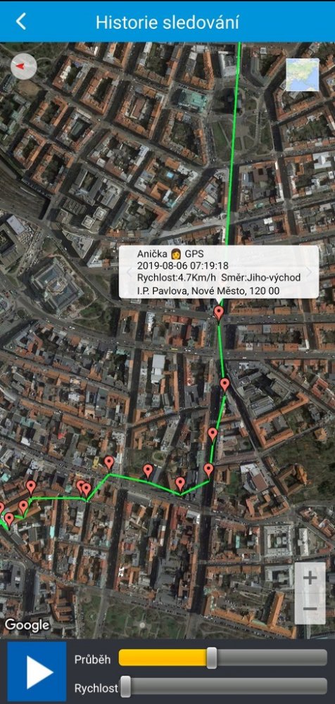 V aplikaci se ukládají veškeré trasy z posledních 30 dní. Můžete si tak prohlédnout, kde všude se GPS Locator vyskytoval. Posledních 24 hodin lze projít minutu po minutě.