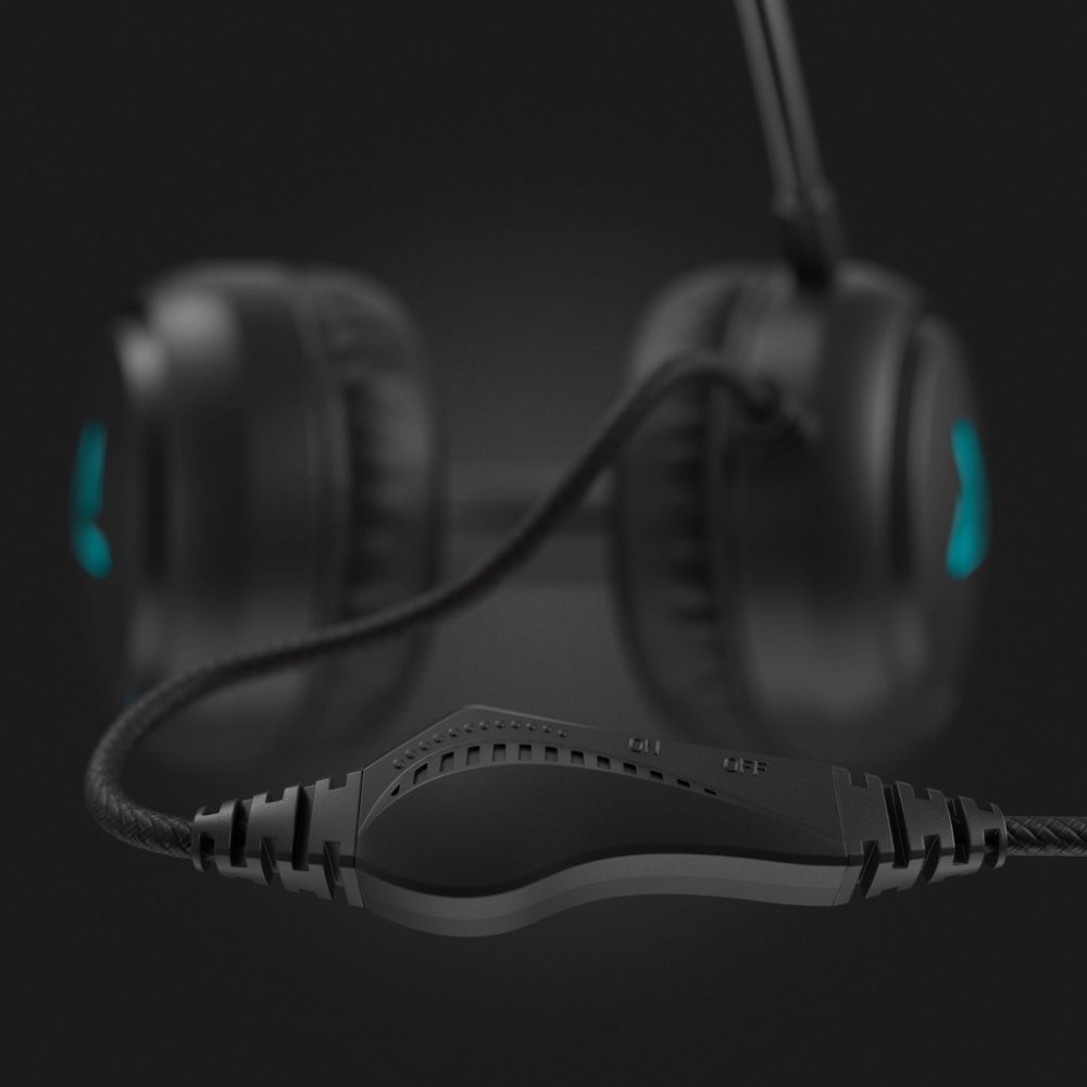 Herní režim, nastavitelný mikrofon, ovládání hlasitosti a mikrofonu na kabelu, lehká ergonomická konstrukce, LED podsvícení