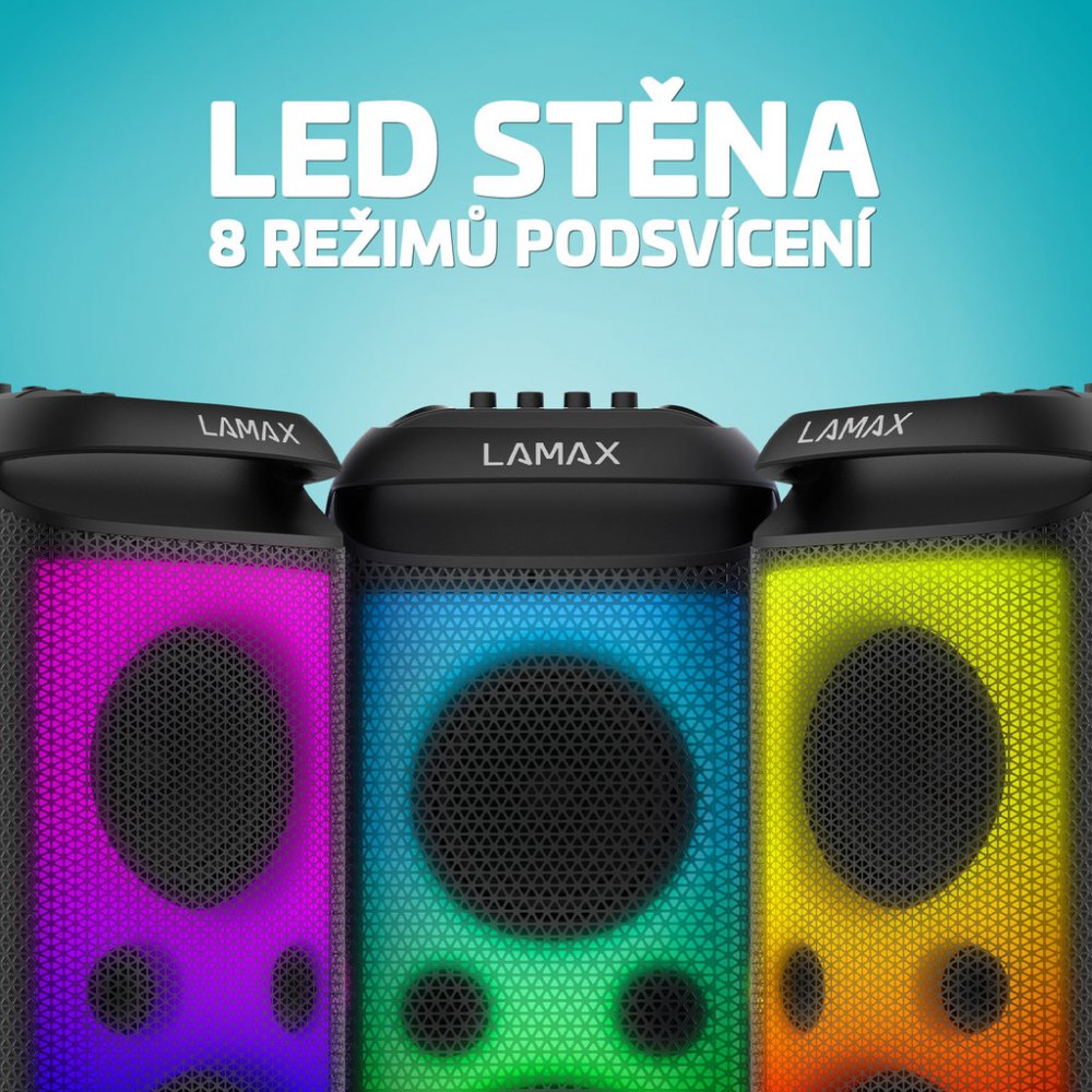 Seznamte se, přichází král. Vládne každý party, oslavě, svatbě, ale nezklame ani jako parťák při cvičení, sledování filmů nebo relaxu u poslechu. LAMAX PartyKing1 Max ze sebe vydá maximum o výkonu až 200 W, ale díky funkci True Wireless Stereo může jít ještě dál. Upozorni však sousedy, že tahle akce bude rozhodně slyšet. Když zrovna není po ruce playlist, naladíš na repráku bez problémů FM rádio. Dvoupásmový reproduktory chrlí hity v té nejlepší kvalitě zvuku, který ještě podporuje detailní nastavení vstupů s technologií BeatBass®. Roztančí nejen tebe, ale i 8 parádních LED efektů pro doladění atmošky. Ať už budeš akci moderovat nebo si uděláte vlastní koncert, bezdrátový mikrofon a karaoke režim se budou hodit. S možností nahrávání si svoje výkony můžete klidně zvěčnit. Reprák podporuje nejrůznější formáty i připojení, pro propojení ale asi nejvíc využiješ Bluetooth 5.3, přes který dojde k automatickému párování nejen s mobilem. Ovládání repráku je jednoduchý, intuitivní a díky dálkovému ovládači i pohodlný. Připrav se, tahle party bude hodně dlouhá, reprák vydrží až 15 hodin na jedno nabití.
