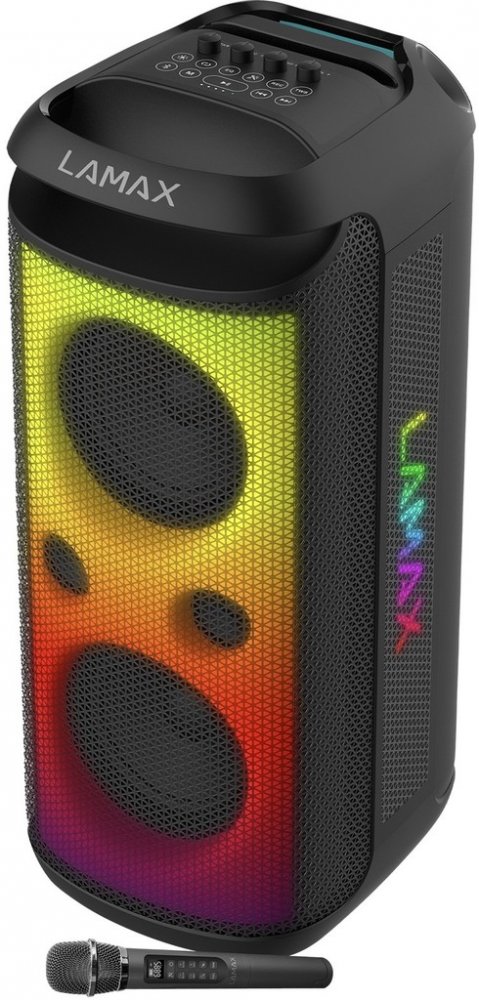 LAMAX PartyKing1 Max tě dokonale odzbrojí nejen zvukem a výkonem, ale taky velkou škálou podporovaných formátů (MP3, WAV, FLAC, AAC) i variabilitou připojení (vstupy micro SD, USB-A, AUX mikrofonní a kytarový). Na nejrůznější zařízení se připojíš i pomocí moderního Bluetooth 5.3. Když ale nemáš zrovna po ruce nic, z čeho by šel přehrát playlist, vyřeší to naladění FM rádia. Chceš zkusit vlastní produkci? V pohodě, vem do ruky bezdrátový mikrofon, který najdeš u repráku, zapni karaoke režim a jeď. Možnost nahrávání tvůj výkon zaznamená a jako skutečná star si budeš připadat v záři až 8 nastavitelných LED efektů.