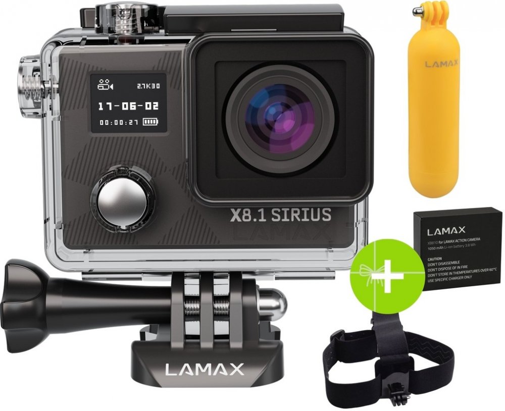 Kamera X8.1 Sirius se dodává s bohatým příslušenstvím, které výrazně rozšiřuje její možnosti v každém prostředí a za všech podmínek. Dvě baterie v základním balení umožňují delší pobyt v přírodě a dalších 22 kusů příslušenství – včetně celého spektra pomůcek pro upevnění kamery a vodě a nárazům odolného pouzdra, které kameru chrání až do hloubky 30 m. Budete tak moci pořídit unikátní záběry i v extrémních situacích, kde jiné vybavení neobstojí. Pomocí nastavení v kameře můžete navíc upravit parametry záznamu podle aktuálního prostředí.