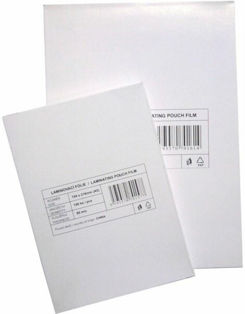 Transparentní laminovací fólie lesklá Ekonomické provedení v bílém přebalu Vhodné do všech typů stolních laminátorů Tloušťka jedné strany fólie 80 mic Rozměr 111 x 154 mm Balení 100 ks