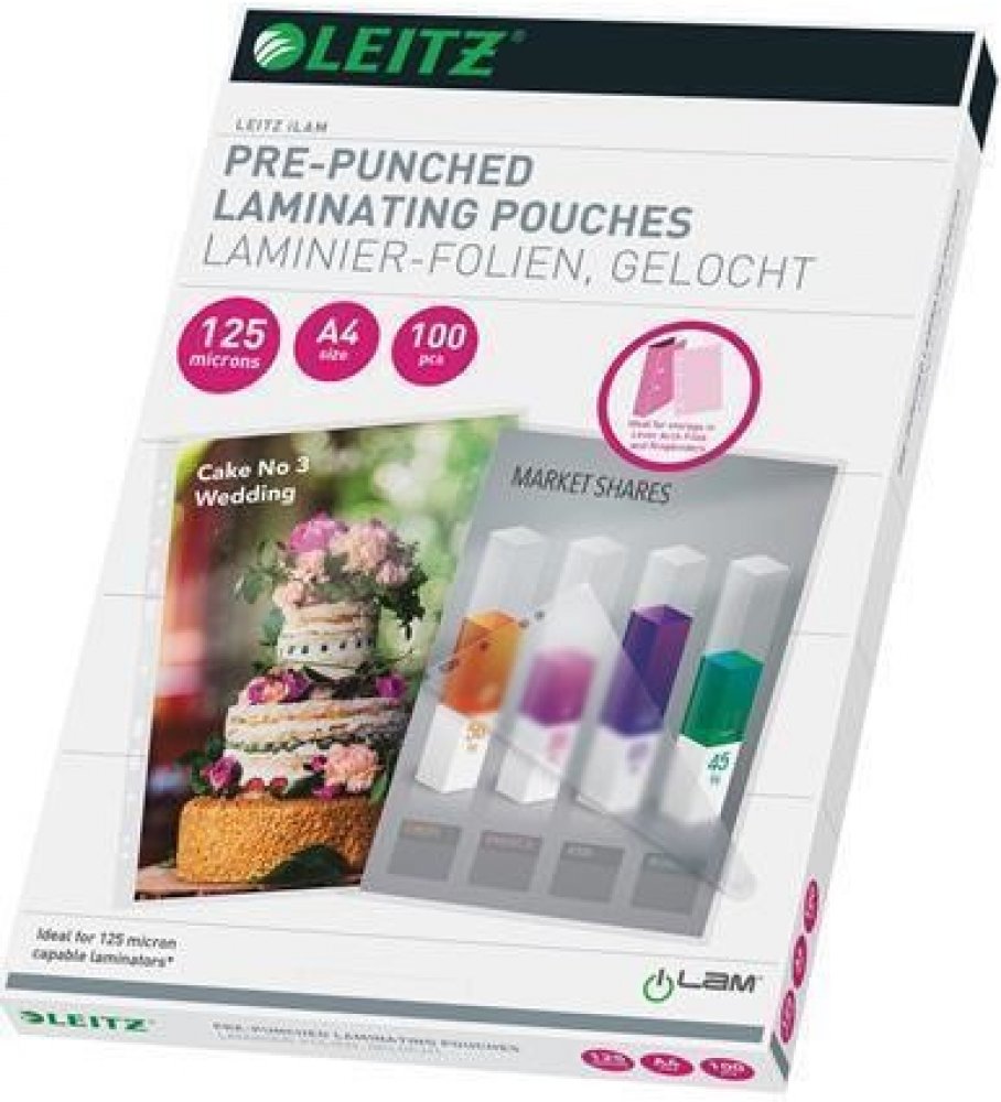 Laminovací fólie "Standard", lesklá, pro kroužkové a pákové pořadače, 125 micron, A4, LEITZ