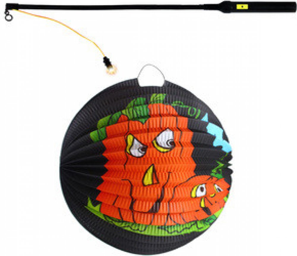 Hračka pro děti od 3 letPapírový černý lampion s dýněmi a k němu svítící hůlka! Kulatý lampion je vyroben z papíru a ve spodní části se nachází úchyt pro svíčku. Tento super kousek ti zaručí parádní atmosféru na tvém halloweenském večírku nebo lampionovém průvodu! Hůlka vyžaduje 2 tužkové baterie typu AA, které nejsou součástí balení. Přepnutím spínače na rukojeti hůlka svítí. Velikost balení: 0x0x0 mm