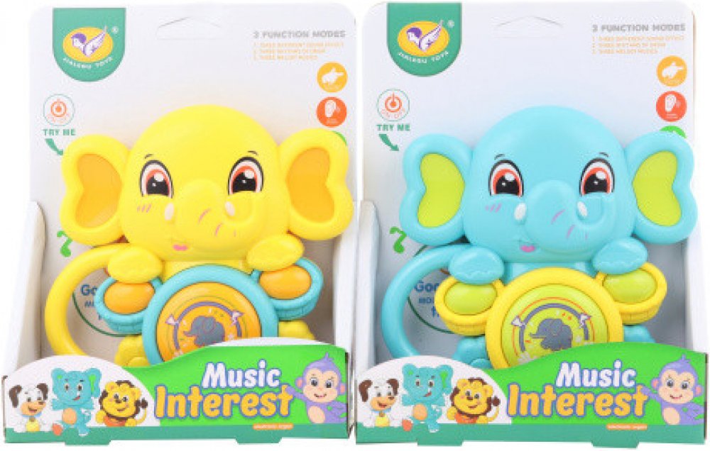 Baby slůně pro nejmenší. Slůně hraje po zmáčknutí bubínku 9 různýh melodií a zvuků. Napájení na 2 AAA baterie (jsou součástí). Rozměry sluněte cca 12,5 x 12,5 cm. Rozměry balení cca 14 x 18 x 4,5 cm. Věk 12m+