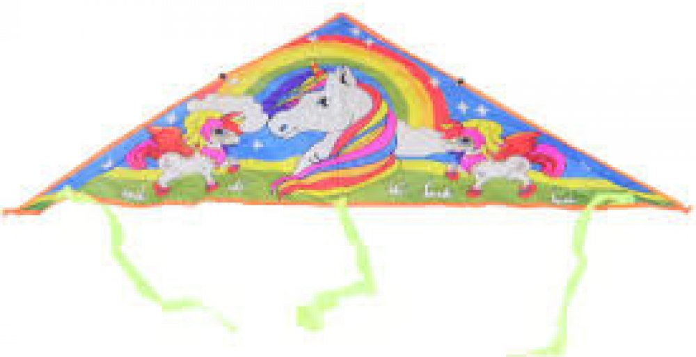 Létací drak nylon s jednorožcem o rozměru cca 92 x 52 cm. Věk 3+