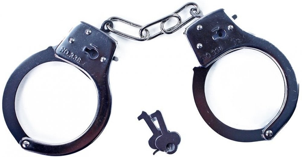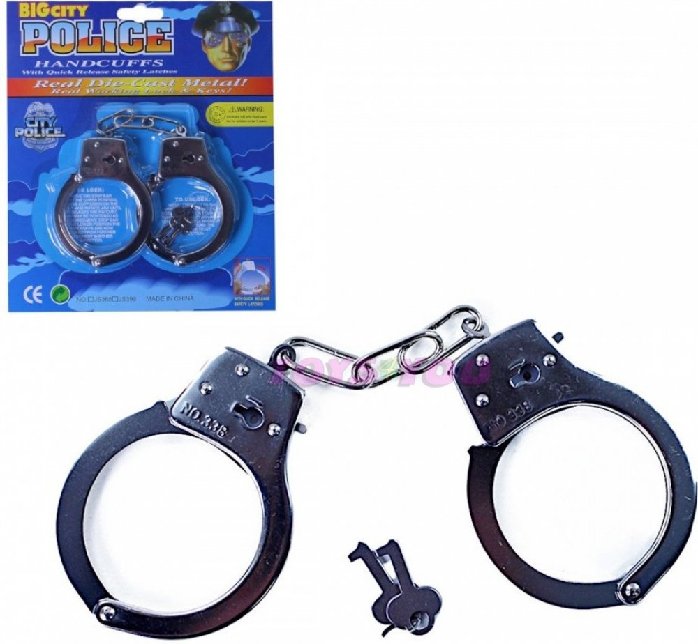 Kovová pouta na kartě. Obsahuje 2 klíčky. Velikost balení 28 x 12 cm.
