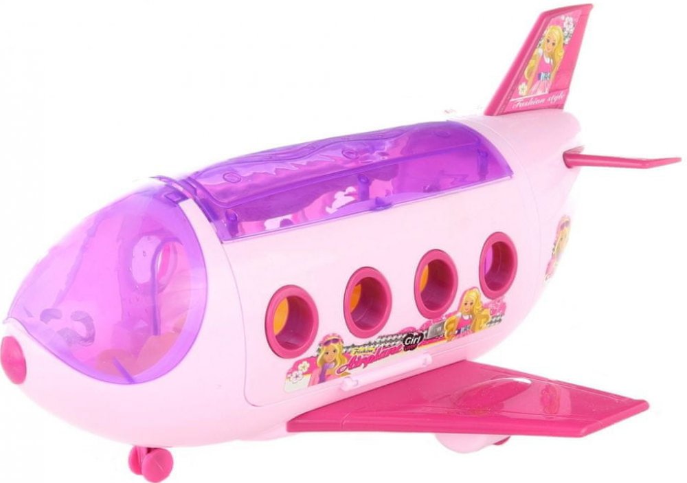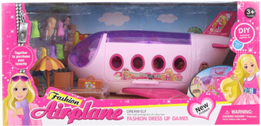 Balení obsahuje: letadlo, nábytek, kufr, 2 panenky, 6 druhů oblečení a další doplňky.
