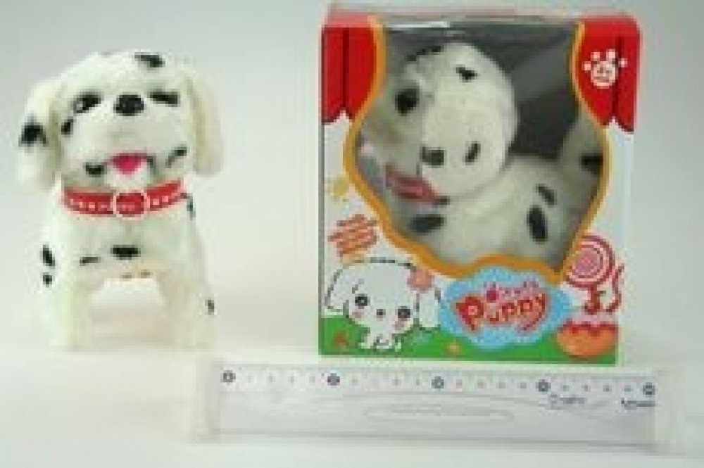 Pejsek chodící o velikosti cca 14 cm X 16 cm. Pejsek chodí a štěká sám,dokud vypínač neposunete do polohy OFF.