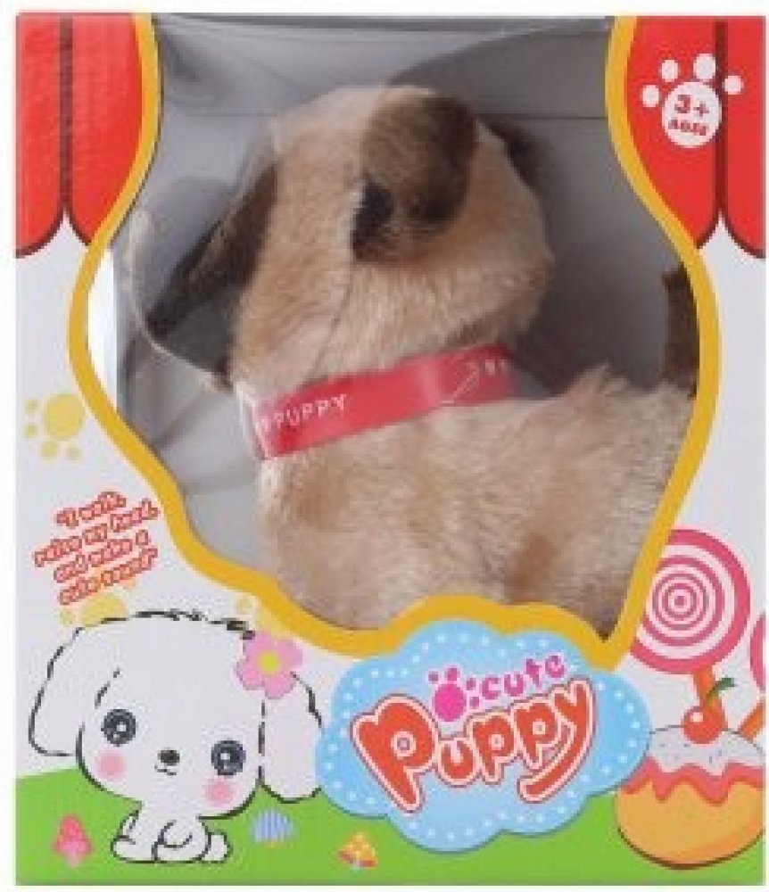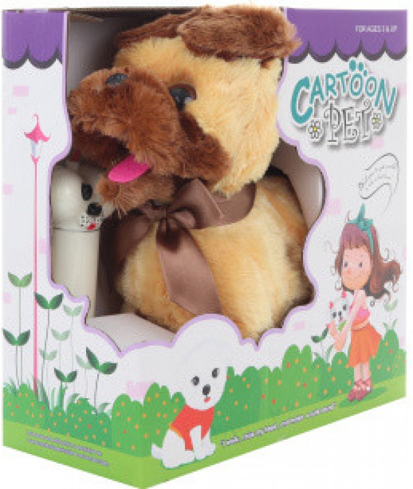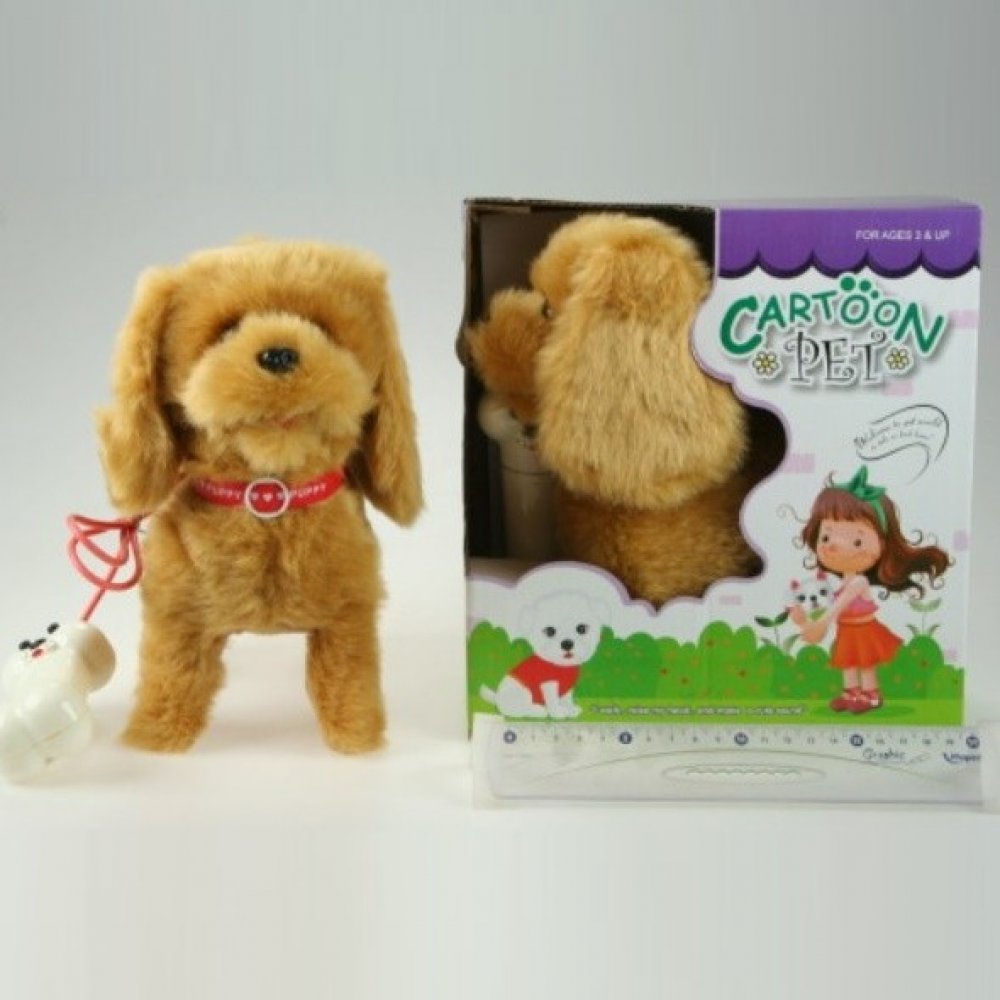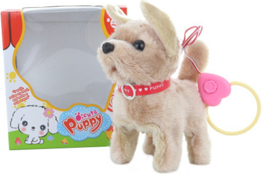 Roztomilý plyšový psík s obojkem z plyše, s kabelem na ovládání, který umí chodit i štěkat. Zvuková hračka - se zvukem.