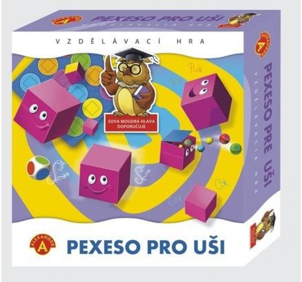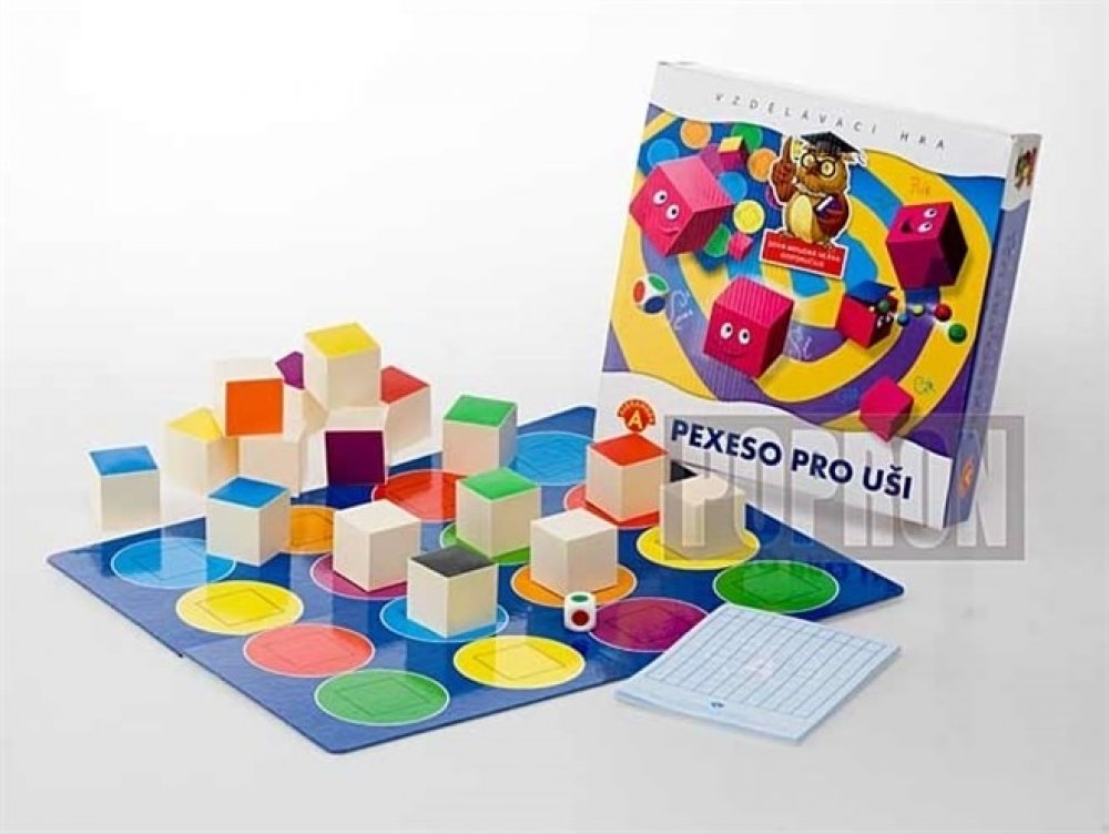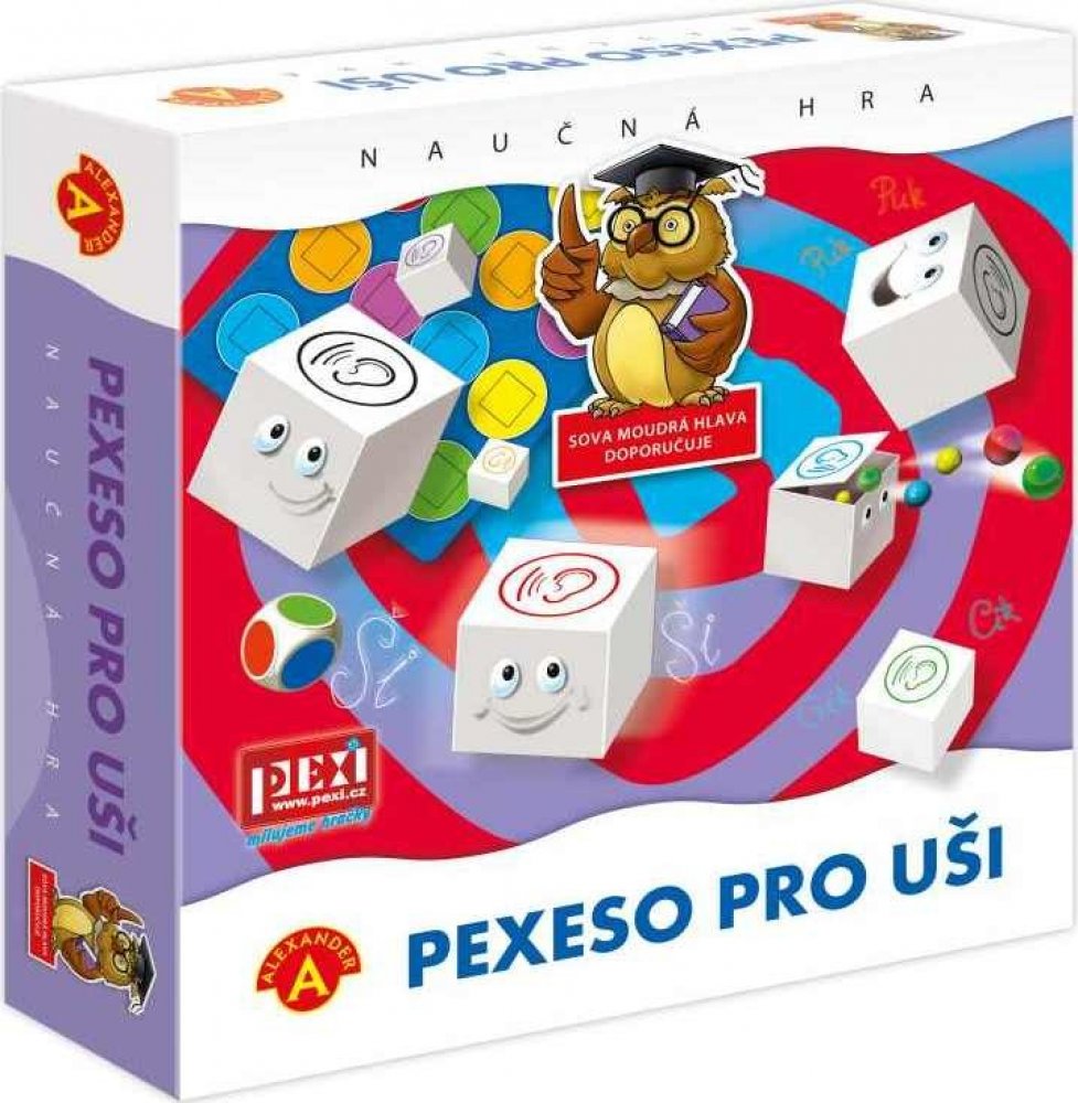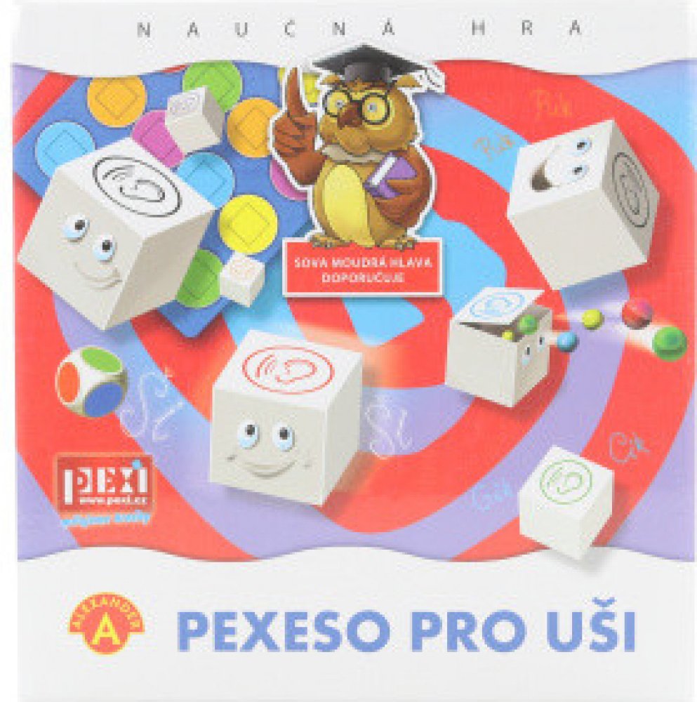 Princip hry „Pexeso pro uši“ spočívá v zapamatování zvuků rozložených kostek. Hráči se snaží posbírat co nejvíce párů kostek se stejným zvukem. Zvuků mohou rozenat celkem 8. „Pexeso pro uši“ je naučná hra, která zavede účastníky do světa zvuků. Jejím cílem je rozvoj pozorného naslouchání a cvičení zanedbávané sluchové paměti a její rozvoj a zdokonalení v poznávání barev.