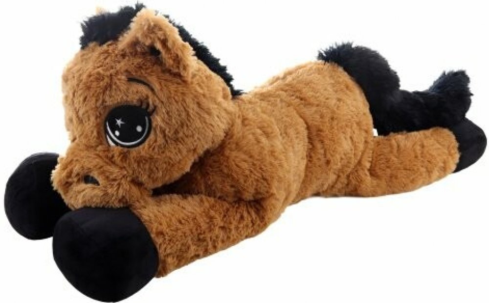 Plyšový kůň hnědý ležící. Rozměry 80x32x25 cm. Věk 0+