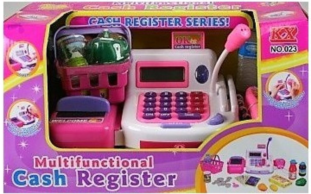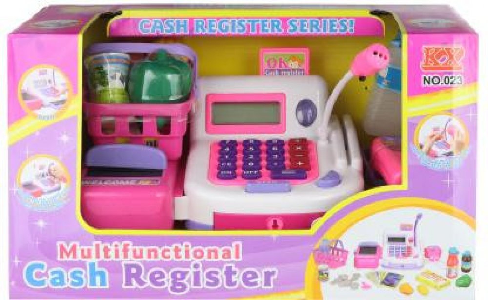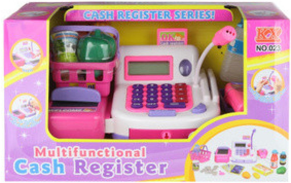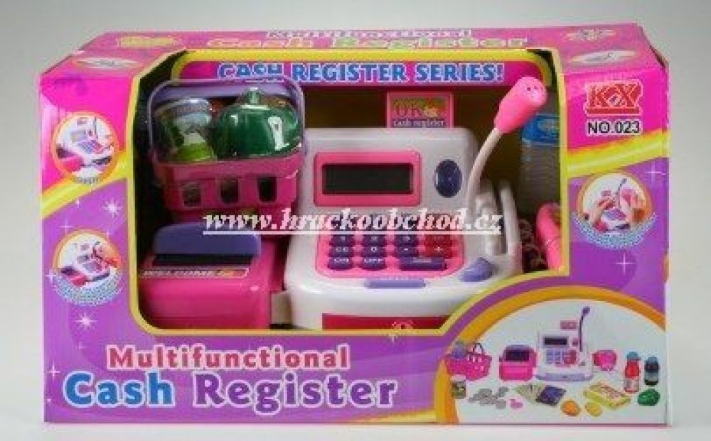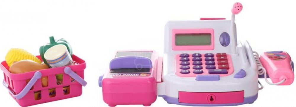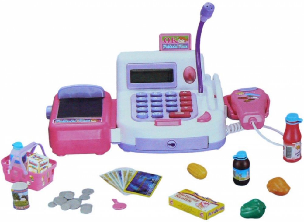 Lamps Pokladna registrační s pásem a čtečkou. Registrační pokladna pro malého prodavače. Velikost pokladny s pásem cca 21 x 14 cm. Sada obsahuje pokladnu s pásem a čtečkou, košík s nákupem a peníze. Pokladna je funkční na 2 baterie AA 1,5V, které nejsou součástí balení. Věk 3+