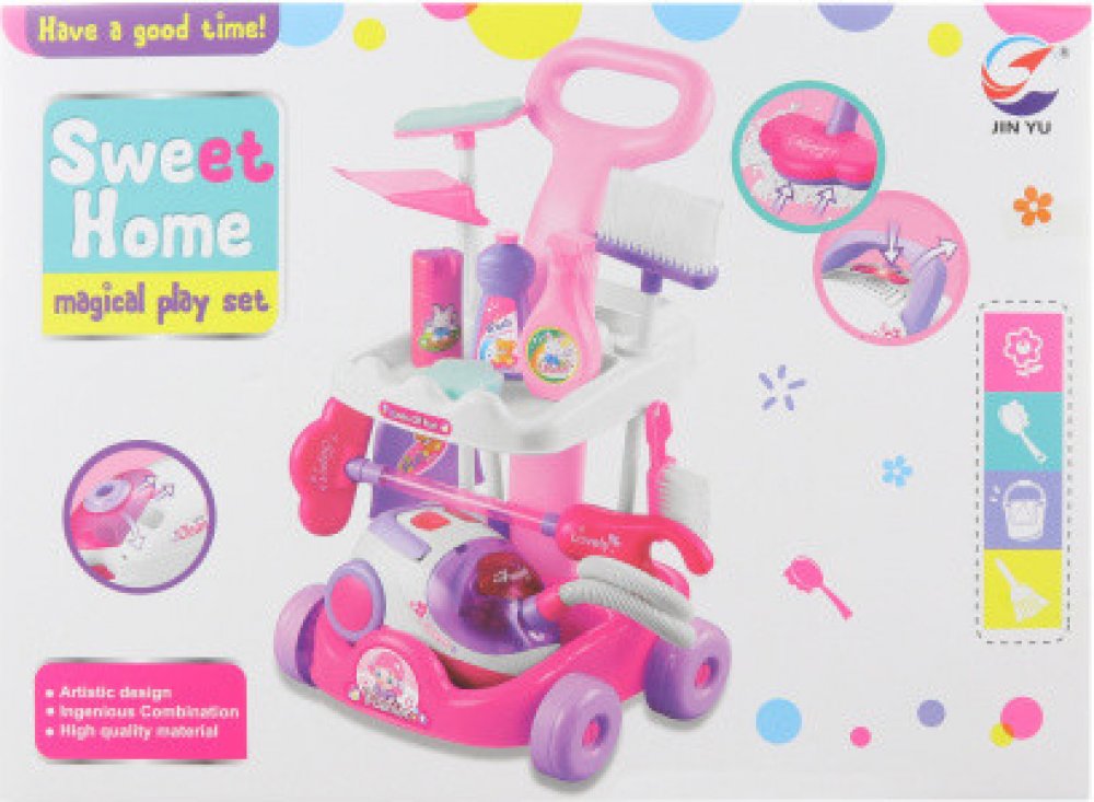 Lamps Úklidový vozík dětský s vysavačem a doplňky růžový