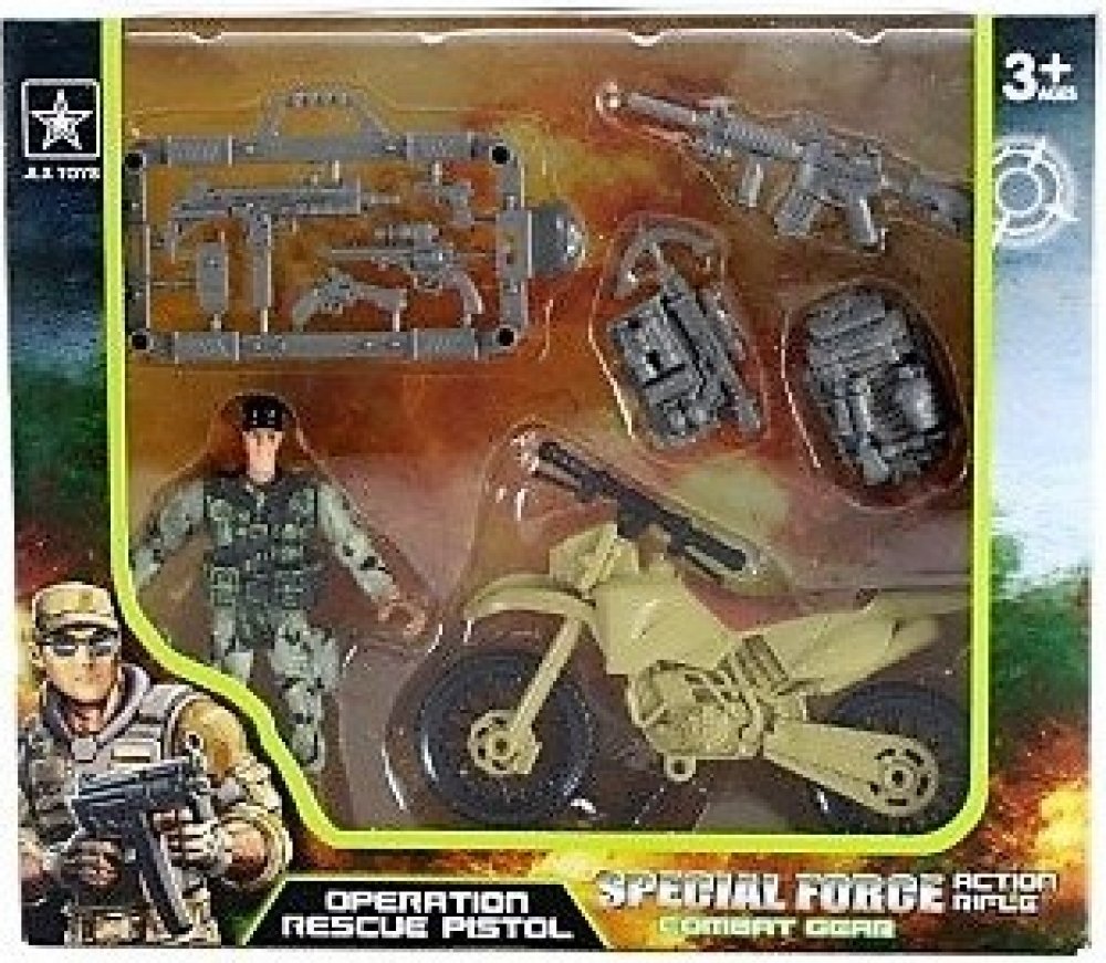 Balení obsahuje vojáčka, motorku a další doplňky.