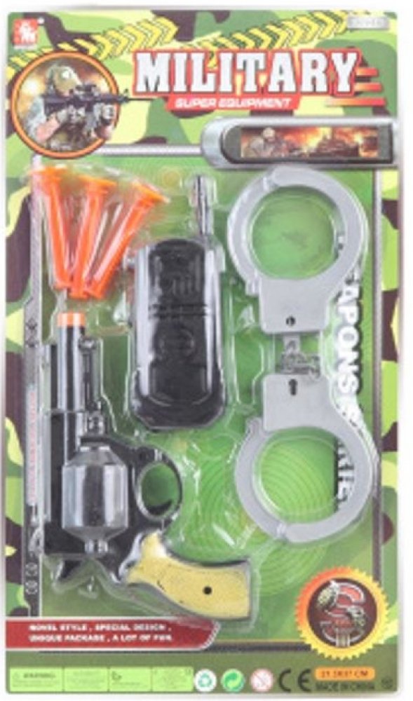 Vojenská sada obsahuje revolver, tři náboje s přísavkou, vysílačku a pouta. Rozměr balení cca 37 x 21,5 x 3,5 cm. Věk 3+ Vojenská sada obsahuje revolver, tři náboje s přísavkou, vysílačku a pouta. Rozměr balení cca 37 x 21,5 x 3,5 cm. Věk 3+. Cena je uvedena za 1 ks výrobku.