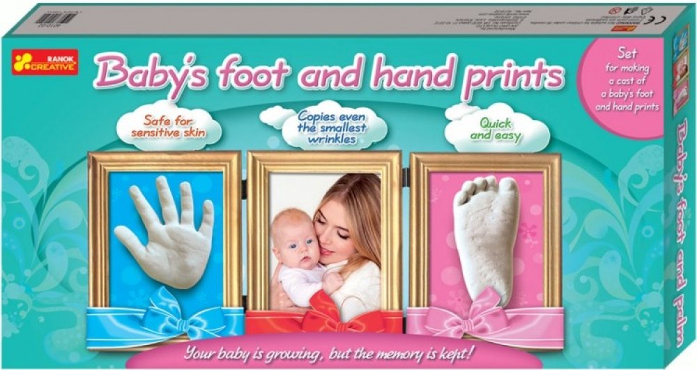 Velká sada pro otisk nožičky a ručičky Vašeho děťátka. Součástí je i třídílný dámeček do kterého lze otisky vložit. Balení obsahuje plastové formy, modelovací gel, sádru, lepidlo a další potřeby.