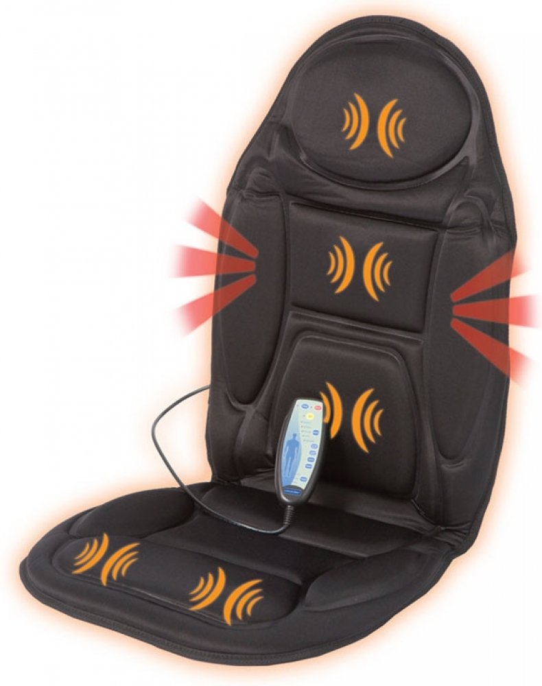 Masážní podložka do auta i kanceláře Back Massager s dálkovým ovladačem a zabudovaným vyhřívaným pásem kolem ledvin. Relaxační, stimulační a vzpružující účinek masážních přístrojů na svalstvo přispívá velkou měrou k upevňování vašeho zdraví a zdokonalování vaší postavy.