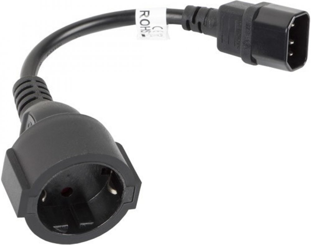 LANBERG IEC 320 C14 na SCHUKO(F) adaptér kabel pro UPS 20CM černý Prodloužení napájecího kabelu Lanberg pro PC, notebooky a serverové napájecí zdroje s konektory IEC 320 C13 a Uni-Schuko vám umožňuje poskytovat spolehlivé a nepřerušované napájení pro zařízení IT, ICT a RTV.
