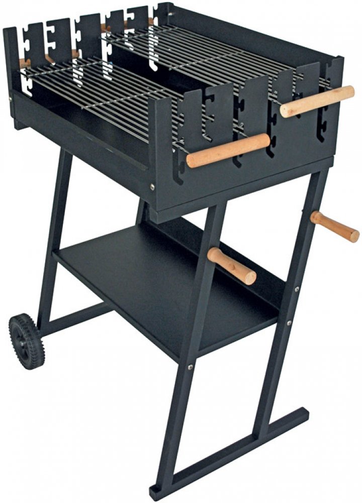 Landmann GrillChef Wagon BBQ gril na dřevěné uhlí Vozíkový značkový zahradní gril Grill Chef Wagon BBQ s grilovací plochou 58,5 x 41 cm je spolehlivým pomocníkem při každé zahradní párty. S jeho pomocí uspokojíte až 10 strávníků, aniž by některý musel na svůj pokrm dlouho čekat. Výhodou tohoto grilu na dřevěné uhlí je fakt, že disponuje dvoudílným roštem. Každou část lze výškově nastavit ve čtyřech různých polohách podle toho, co zrovna grilujete. Tím pádem se vám podaří servírovat maso i zeleninu v jeden okamžik, aniž by část jídla již vychladla.Kromě koleček a dřevěných ergonomickcýh madel pro snadnou manipulaci je gril vybaven i praktickou policí, na kterou lze odložit potraviny, příbory, BBQ omáčky nebo třeba pytel se zásobou dřevěného uhlí či briket. Parametry grilu GrillChef Wagon BBQ 61 x 45 cm: typ grilu: na dřevěné uhlí kapacita grilu: až pro 10 osob materiál: lakovaná ocel (žáruvzdorný práškový nástřik), dřevo rošt: chromovaný rozměr: 78 x 52 x 90,5 cm rozměr dvoudílného grilovacího roštu: 58,5 x 41 cm rozměr balení: 66 x 28 x 10 cm hmotnost: 14 kg barva: černá / přírodní dřevo EAN: 4000810114702 záruční doba: 2 roky
