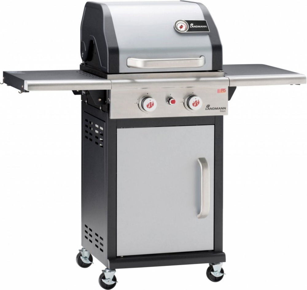 Plynový gril LANDMANN Triton je prémiový plynový gril: díky dvoustěnnému víku je teplota optimálně udržována a lze ji kontrolovat teploměrem. Plynové láhve (11 kg) a grilovací příslušenství lze uložit v uzavřené dvoustěnné spodní skříňce se dvěma dvířky. Díky čtyřem hladce se pohybujícím uzamykatelným kolečkům lze gril snadno převážet. Přední panel a čela bočních polic z leštěné nerezové oceli Dvoustěnné víko a dvířka skříně Výkon 7,0 kW 2 nezávislé hořáky z nerezové oceli ( 2 x 3,5 kW) Litinový smaltovaný dvoudílný grilovací rošt Ocelový smaltovaný rošt pro ohřev pokrmů Kryty hořáků Praktický systém pro sběr rozpuštěného tuku s vyjímatelnou, snadno vyprázdnitelnou nádobou Indikátor teploty ve víku Uzamykatelná spodní skříňka se zásuvkou na plynovou láhev Věšák na grilovací příslušenství Elektronické zapalování v tlačítku samostatné pro každý hořák Hadice a regulátor tlaku součástí dodávky Možnost mytí v myčce kryty, odkapávací miska a nádoba na tuk Grilovací plocha : 48 x 44 cm SYSTÉMEM PTS: pro optimální distribuci tepla bez tepelných bloků nebo studených zón pro vynikající výsledky grilování Rozměr sestaveného grilu: 121,5 x 123 x 57 cm (ŠxVxH) Váha: 42 kg
