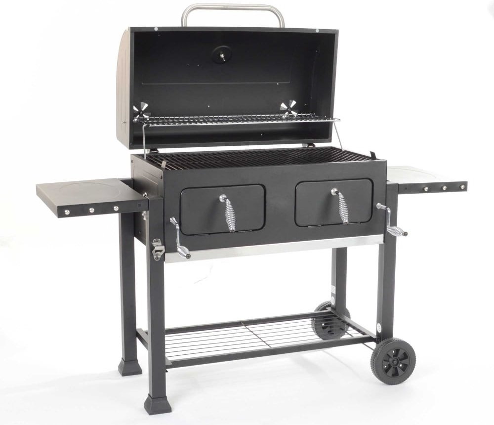 Malé i velké zahradní prostory by měly být obohaceny o funkční vybavení. Zařízení, které bude perfektně fungovat ve vašem prostoru, je grilovací vozík Komfort XXL. S hmotností 45 kilogramů získáte 79,5 x 42 cm grilovací plochy. Díky tomu gril na dřevěné uhlí připraví chutné pokrmy pro cca 14 osob! Grilovací vozík Comfort XL s litinovým roštem Je vyroben z ocelového plechu s práškovým nástřikem. Rukojeti a ozdobné lišty jsou navíc vyrobeny z broušené nerezové oceli. Díky použitým materiálům si můžete být jisti, že vám gril na dřevěné uhlí bude dlouho sloužit. Černé a ocelové prvky jsou doplňkem, který jistě ocení všichni příznivci estetiky a minimalismu. Kromě toho je grilovací vozík také mimořádně funkční. Kromě dvou koleček jej můžete po sezóně pohodlně zvednout a umístit pod střechu. Velký gril na dřevěné uhlí má také smaltovanou děrovanou krbovou desku, jejíž výšku lze plynule nastavit pomocí kliky. Tímto způsobem můžete ovládat i teplotu grilování. Přestože hlavní předností grilů na dřevěné uhlí jsou kolečka, kromě nich má velký gril na dřevěné uhlí také dělený litinový rošt a polorošt pro ohřev ve víku. Velkým komfortem je také uzamykatelná krbová klapka – umožňuje snadný přístup k topeništi. Víko má také ukazatel teploty a ventilační clonu. Grily na dřevěné uhlí musí být snadno čistitelné, proto je tento model vybaven výsuvnou zásuvkou na popel a rošty obsažené v sadě lze mýt v myčce. Využijte sklopnou boční polici s věšákem na příslušenství a integrovaný nerezový otvírák na láhve. Podívejte se, kolik výhod vám litinový grilovací vozík Komfort XL poskytne! vyrobeno z ocelového plechu s práškovým nástřikem; rukojeti a ozdobné lišty z kartáčované nerezové oceli; mobilní základna na 2 plastových kolečkách; dělený litinový grilovací rošt, přídavný poloviční rošt pro ohřev ve víku; smaltovaný, perforovaný krbový tác s plynulým nastavením výšky pomocí kliky; výsuvná zásuvka na popel; uzavřená klapka umožňující snadný a pohodlný přístup k ohništi; ventilační clona v krytu a ohniště; indikátor teploty ve víku; stabilní, sklopná boční police z kovu s věšákem na příslušenství; úspora místa po sklopení boční police; nerezový otvírák na láhve integrovaný v základně; drátěná spodní police; ovládání grilovací teploty plynulým nastavením výšky topeniště; vhodné do myčky nádobí (platí pro rošty); grilovací plocha 79,5 x 42 cm vhodné pro cca 14 osob Rozměr grilu: 154 x 114 x 66 cm Váha: 45 kg Vhodný obal: XL 15707