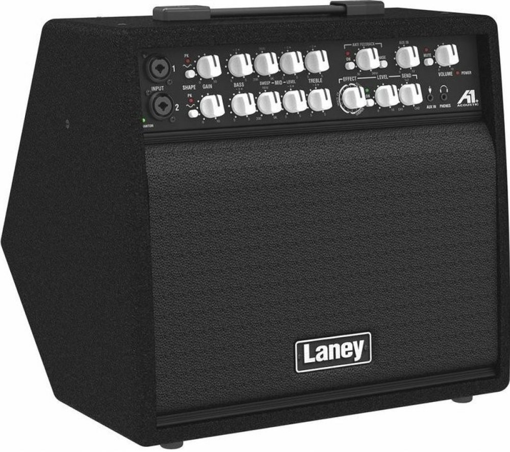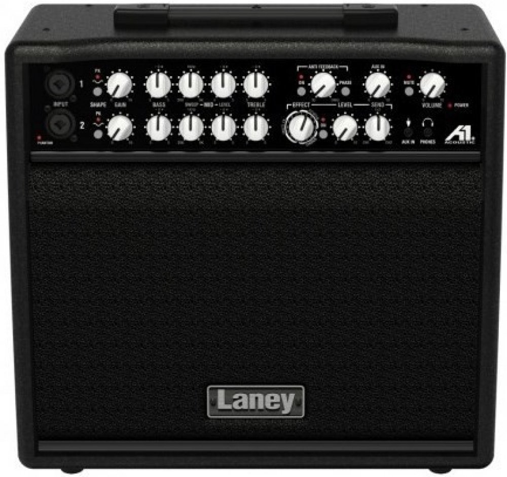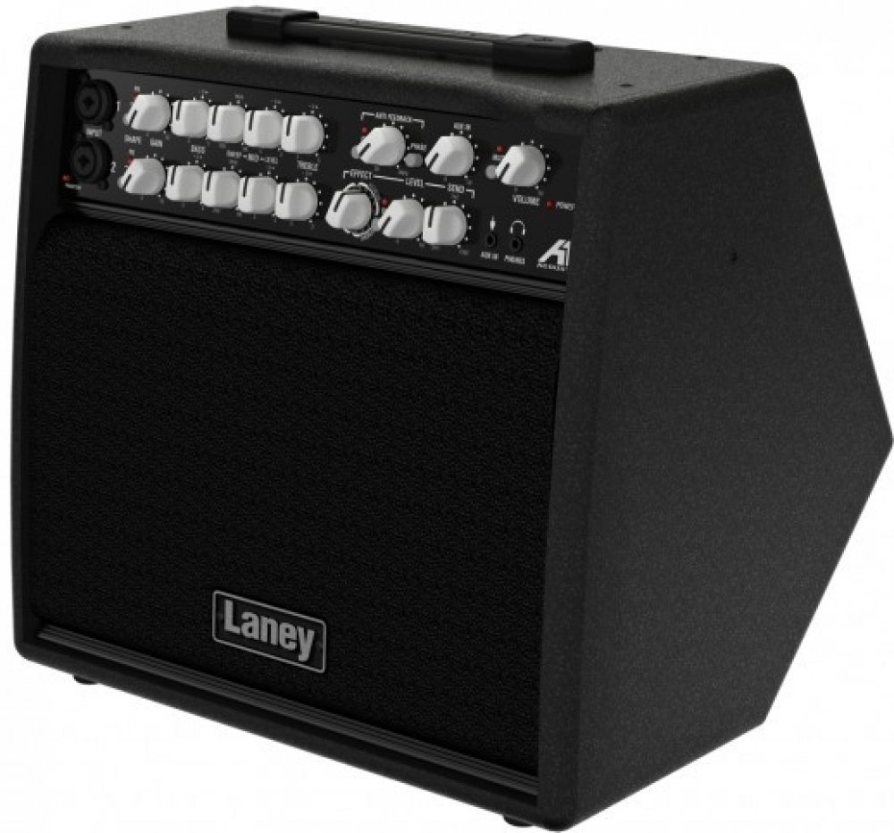 Kombo pro akustické nástroje A1 PLUS A1 Plus je aparátem, který Laney vyvinulo speciálně pro multi-instrumentalisty. Nabízí totiž dva kanály, s kterými bez problémů zvládne připojení elektroakustické kytary, mikrofonu a i dalších nástrojů, pokud by bylo třeba. To spolu se zabudovaným efektovým procesorem a unikátním designem kabinetu činí z A1 skutečně všestranné kombo. Pokud jde o jeho technické parametry, tak nabízí výkon 80 Wattů a je osazené 8palcovým reproduktorem, který doplňuje 1palcový tweeter. Tato konfigurace ho předurčuje pro použití s kapelou ve zkušebně či na menších pódiích. A1 nabízí 2 totožné kanály. Do obou lze signál přivést pomocí Combo-XLR vstupů. Nastavení pak umožňuje pracovat se vstupním zesílením a 3pásmovým semiparametrickým ekvalizérem. V master sekci kromě ovlaače hlasitosti naleznete i anti-feedback a digitální efektovou jednotku. Aparát je též vybaven Line-In vstupem, sluchátkovým výstupem a XLR DI výstupem pro nahrávání nebo připojení k PA. A1 je samozřejmě schopná sloužit jako zdroj phantomového napájení. Šikovné je i zařazení efektové smyčky. Technické údaje • Elektroakustické kombo • Vstupy: Combo-XLR (1. kanál), Combo-XLR (2. kanál) • DSP procesor (16 efektů) • Výstup pro ladičku