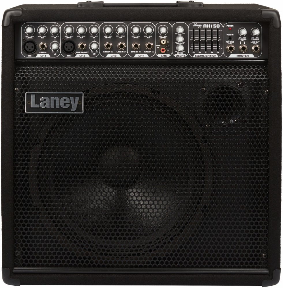 kombo pro univerzální použití, 150W, 12" reproduktor + HF horna, 5 kanálů, 1. a 2. kanál: mikrofonní XLR a linkový vstup, 3. a 4. kanál: 2x linkový vstup, 5. kanál: linkové RCA cinch vstupy, vestavěný digitální Delay, výstupní sekce: společný 5-pásmový grafický EQ, hlasitost, DSP: celková regulace efektu s regulací ozvěn, času zpoždění a celkovou intenzitou efektu, CD vstup, linkové výstupy: před i za celkovou hlasitostí, sluchátkový výstup s regulací hlasitosti, výstup pro externí box 8 Ohm, efektová smyčka, dvoupolohový box, potah z koberce, hmotnost 16.5 kg, možnost připojení komba pro vypínání efektu