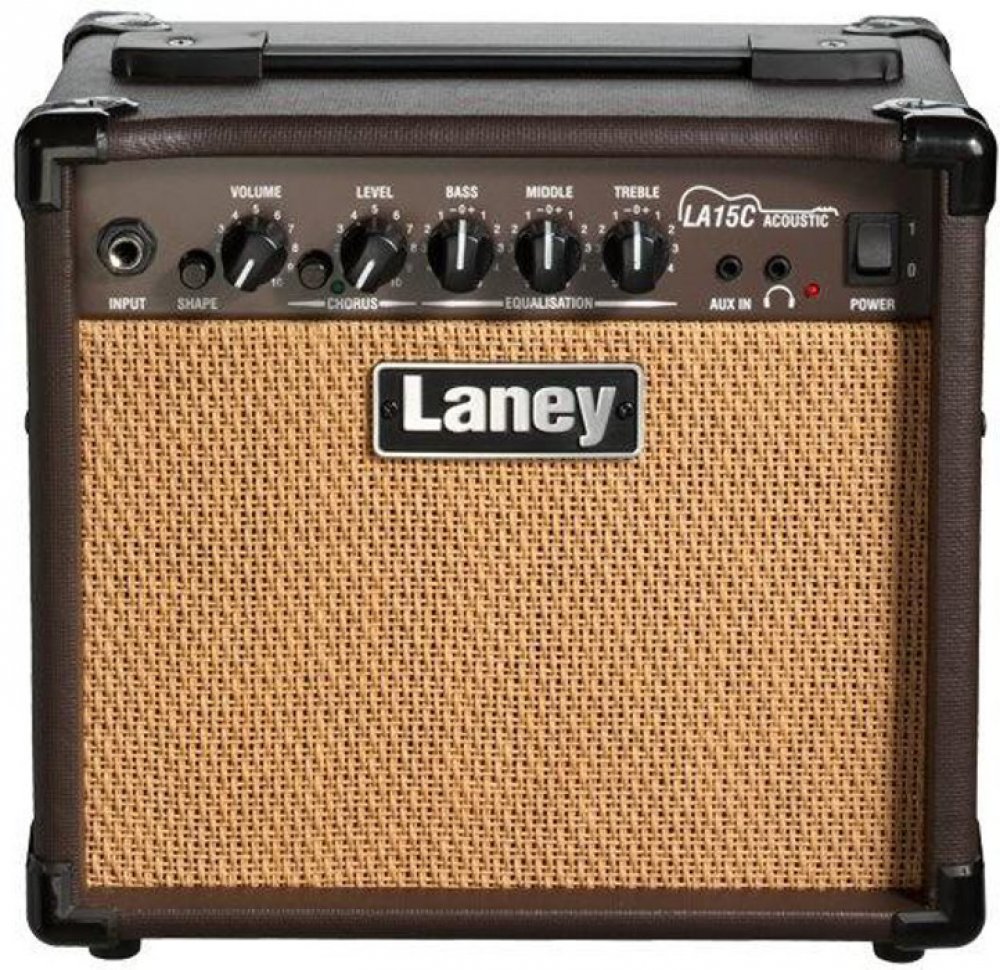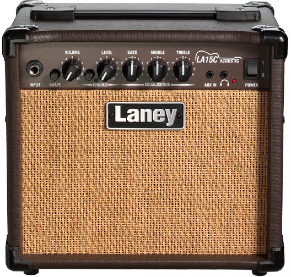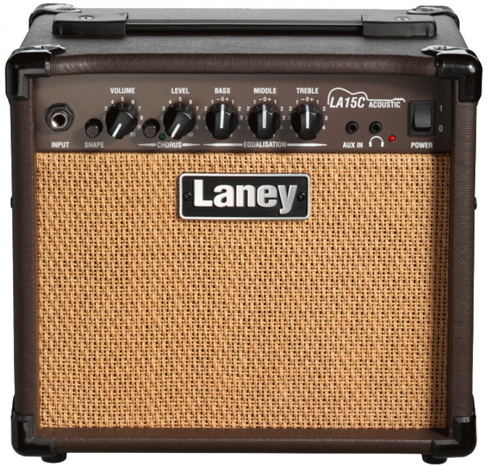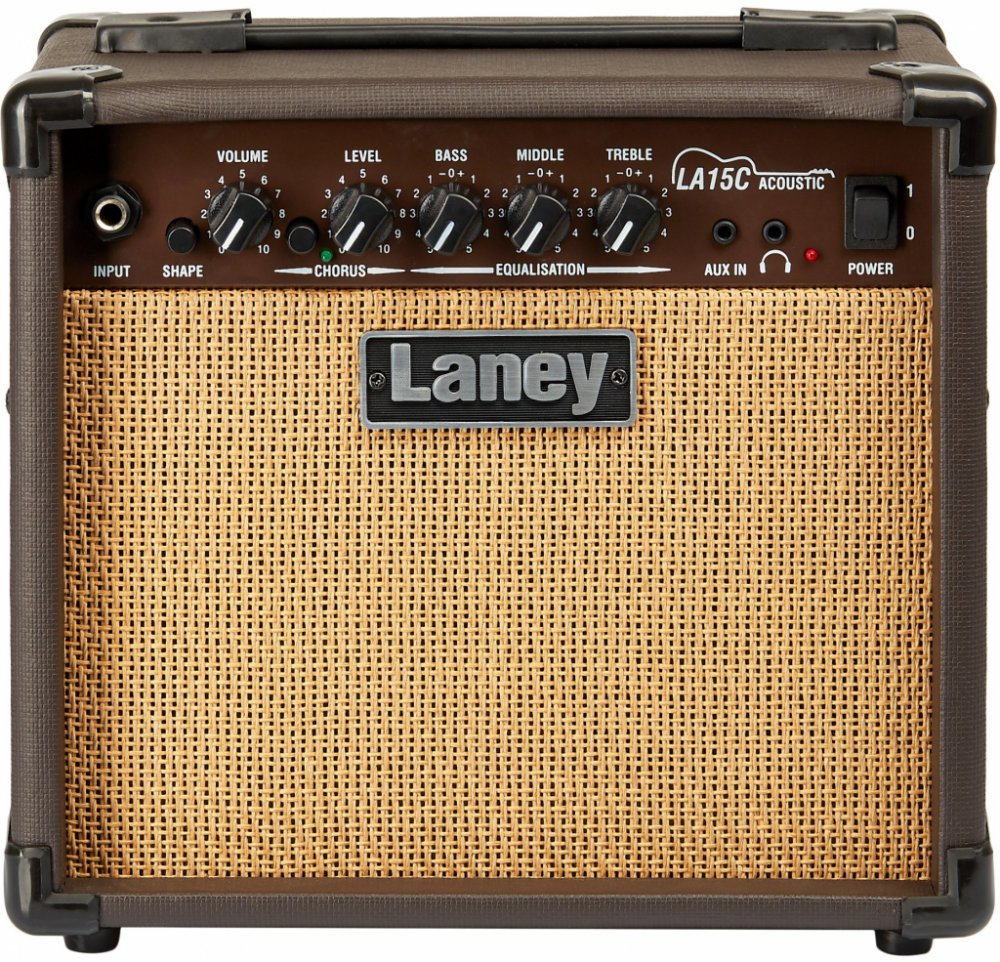 Combo pro akustickou kytaru Laney LA-15C s výkonem 15 W. Výrobky britské firmy Laney bývají považovány za kvalitní a přitom dostupné, a to platí i o řadě akustických komb LA. LA15C je osazeno 2×5" zakázkovým reproduktorem. Jeden kanál, spínatelný efekt chorus. Vstup pro externí přehrávač, výstup na sluchátka. DI výstup (jack).