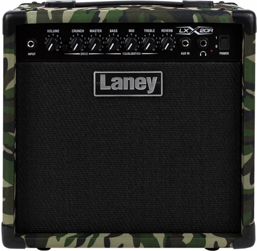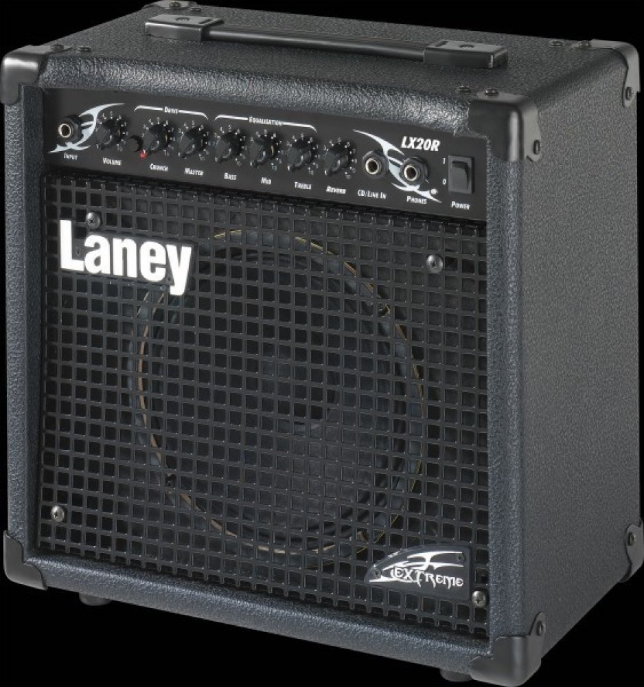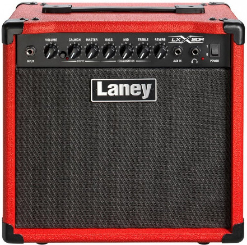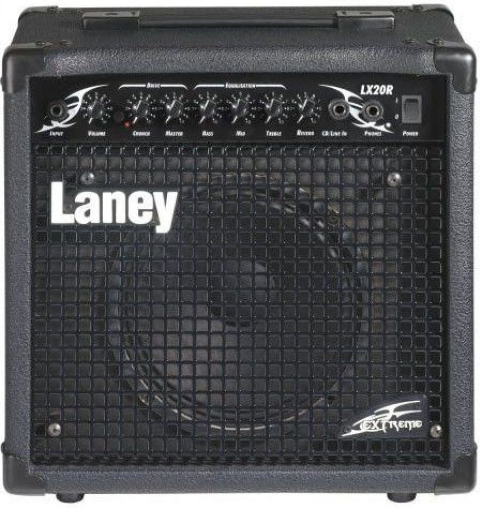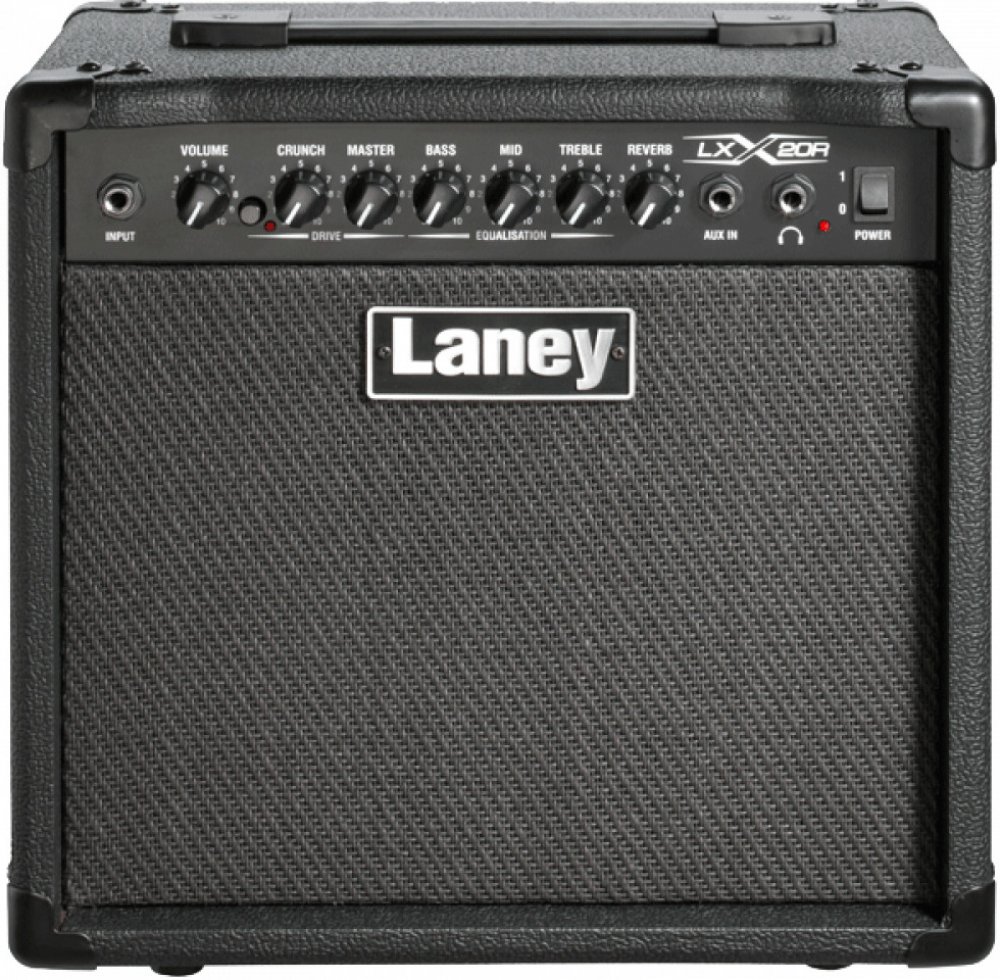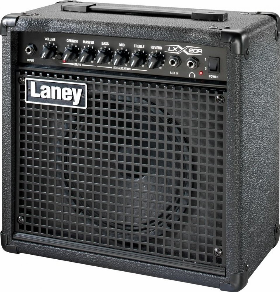 Kytarové tranzistorové kombo Aparáty Laney ze série LX jsou tou pravou volbou pro začínající nebo pokročilejší hráče, které nabízí kvalitní zvuk za dostupnou cenu. Byť jde o základní řadu kytarových aparátů, které tento britský výrobce nabízí, rozhodně není žádný důvod se obávat, že by byly jakkoli ošizené – od LX můžete čekat krásný čistý i velmi vyvedený, silně zkreslený zvuk a cokoliv mezi tím. LX 20R je dvoukanálový tranzistorový aparát, který je osazen reproduktorem o průměru 8 palců. Jde tedy o ideální řešení pro domácí cvičení či hraní s přáteli v menších prostorech. Všechny ovládací prvky naleznete na předním panelu. Za vstupem pro kytaru je ovladač Volume pro nastavení celkové hlasitosti a spínač On, které aktivuje druhý kanál. Pomocí potenciometrů Crunch a Master nastavíte požadovanou míru zkreslení a hlasitosti. Oba kanály mají společný třípásmový ekvalizér a pro přidání prostoru můžete použít ovladač Reverb. Nechybí sluchátkový výstup a vstup pro jamování s vašimi oblíbenými nahrávkami nebo podklady.