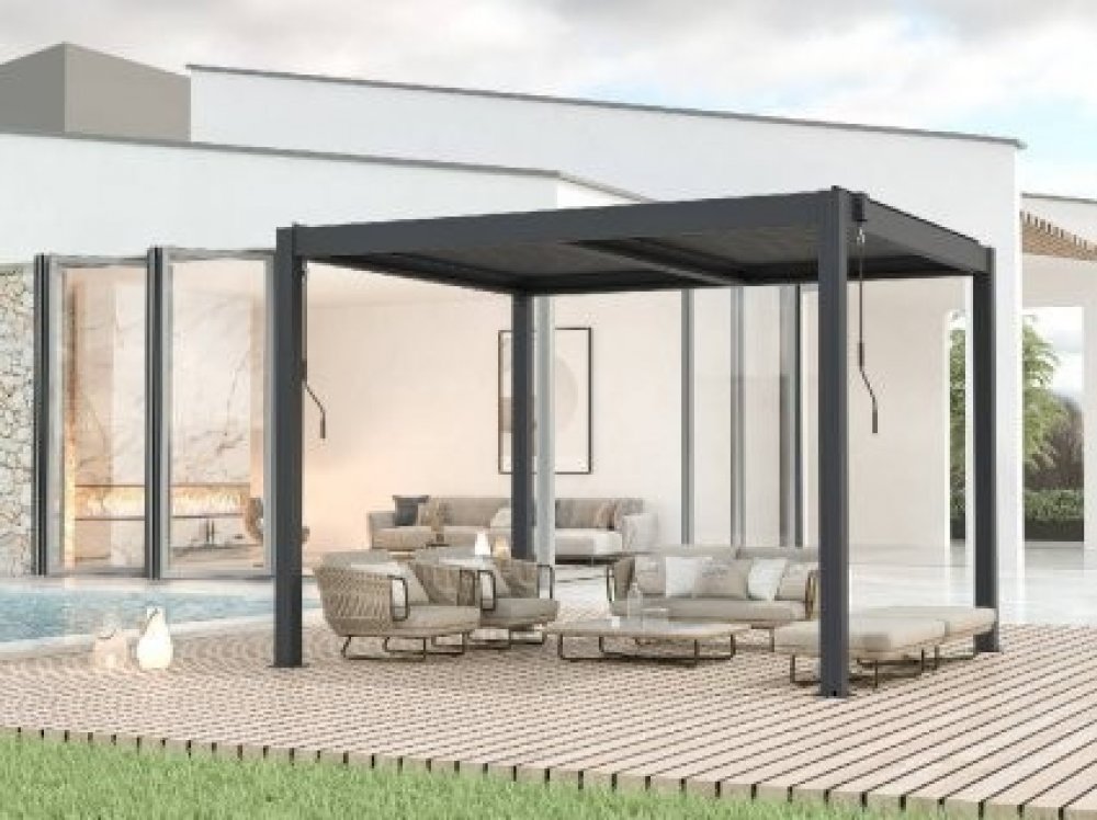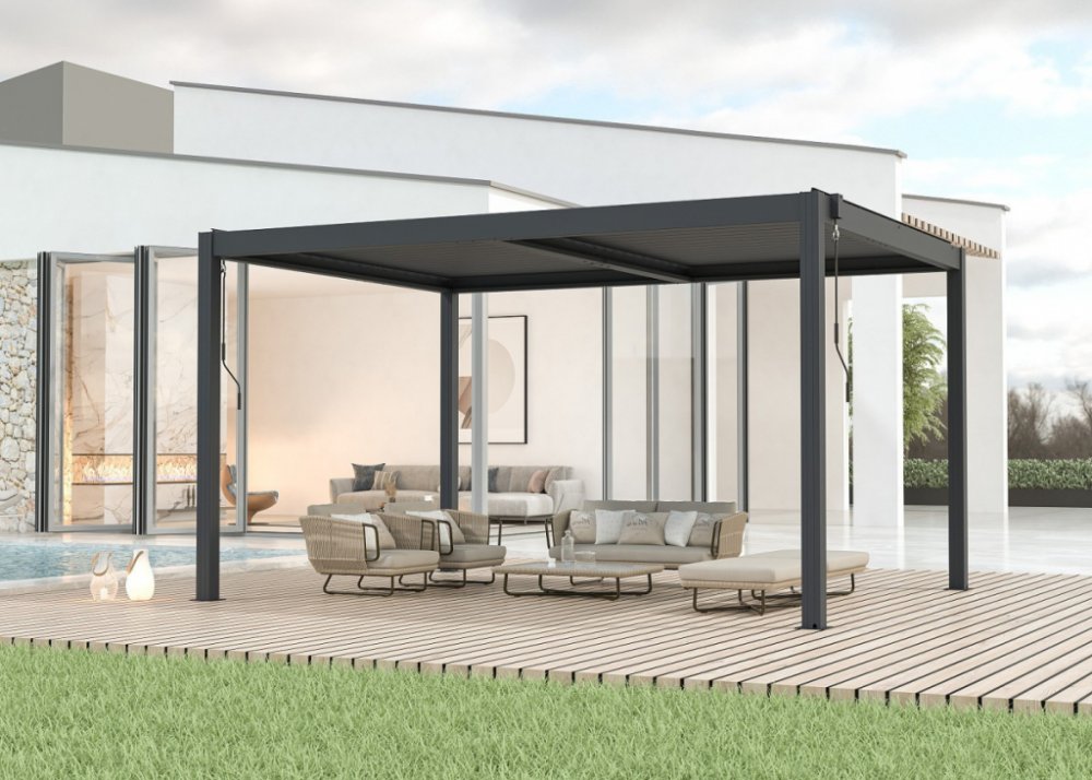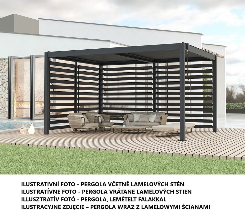 Pergola LANITPLAST BIOCLIMATIC BASIC je místem, kde naleznete příjemné místo k odpočinku v čím dál tím častějších horkých letních dnech. Pergolu lze vybavit bočními lamelovými stěnami (příplatkové příslušenství), které poskytnou dodatečné zastínění přes sluncem a ochranu soukromí před zvídavými pohledy sousedů. Boční lamely lze snadno ručně natočit podle aktuálních potřeb – lze je plně otevřít naplocho, naklonit nebo zcela zavřít. To vám umožňuje vytvořit si útulné prostředí i při větším slunečním žáru nebo v chladnějším počasí.