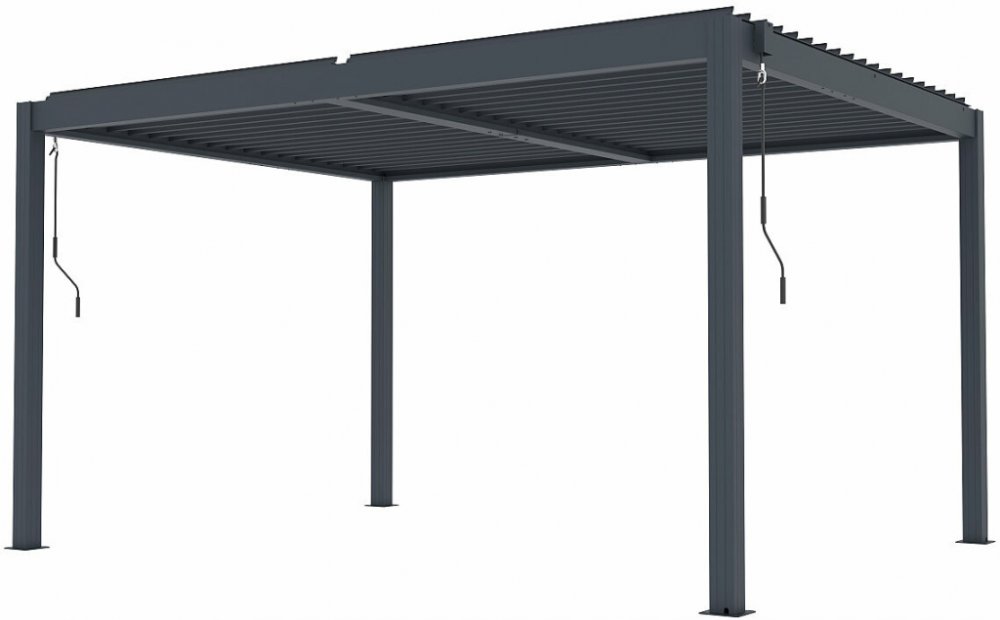 Základní verze bioklimatické pergoly LANITPLAST BIOCLIMATIC BASIC s vodorovnou lamelovou střechou a manuálním ovládáním střešních lamel. Jedná se o základní verzi pergoly, která má konstrukci z hliníku a střechu složenou z desítek otočných ocelových lamel. Lamely je možné manuálně klikou otáčet v úhlu 0 až 110o. Malá ruční klika ovládá mechanismus střechy, přičemž jejím otáčením umožňujete plynul...