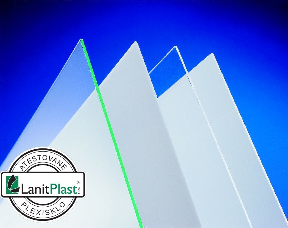 PLEXISKLO - tvrdý, ale relativně křehký materiál, především při řezání (v síle 2 – 5 mm) a vrtání; desku lze v ploše vyleštit; průměrná chemická odolnost; úplně čirá průhledná deska; trvale snese max 80oC; velká tepelná dilatace – až 5 mm / m – při nedodržení může deska prasknout; nízká cena