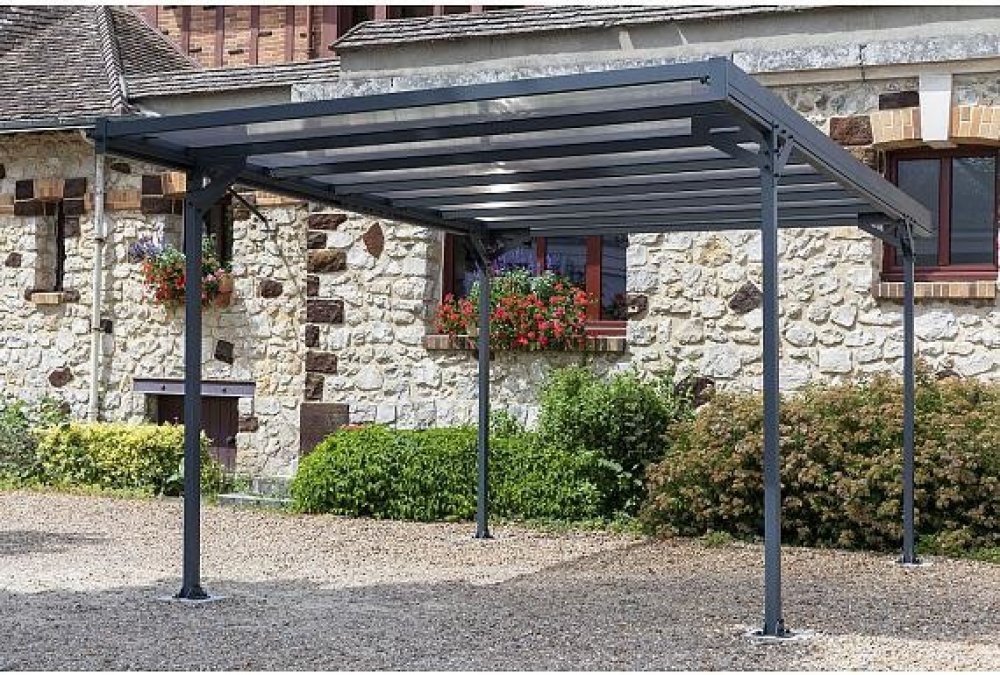 Celohliníkový přístřešek skvěle poslouží jako garážové stání pro Váš automobil. Přístřešek můžete využít i na uskladnění zahradního traktůrku nebo zahradní mechanizace, popřípadě poslouží i jako přístřešek pro zahradní posezení. Robustní a odolná konstrukce je z obdélníkových hliníkových profilů 50 x 70 mm opatřených vypalovanou práškovou barvou odstín antracit. Střecha je vyrobena z komůrkového polykarbonátu síly 6 mm kouřově hnědé (bronz) barvy. Montáž přístřešku je nutno provádět na rovném zpevněném podkladu (nejlépe beton, dlaždice, apod.).