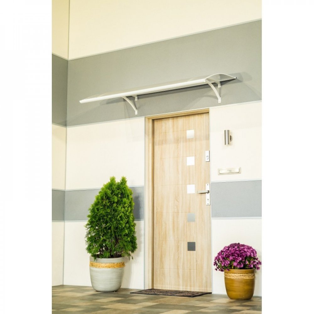 Pultová stříška LARUS 120 x 87 cm, jednoduchá a elegantní vchodová stříška je dokonalou ochranou Vašich dveří před deštěm, sněhem a větrem. Lehké zastřešení připravené k samostatné montáži bez potřeby použití dodatečných pomocných podpěr.