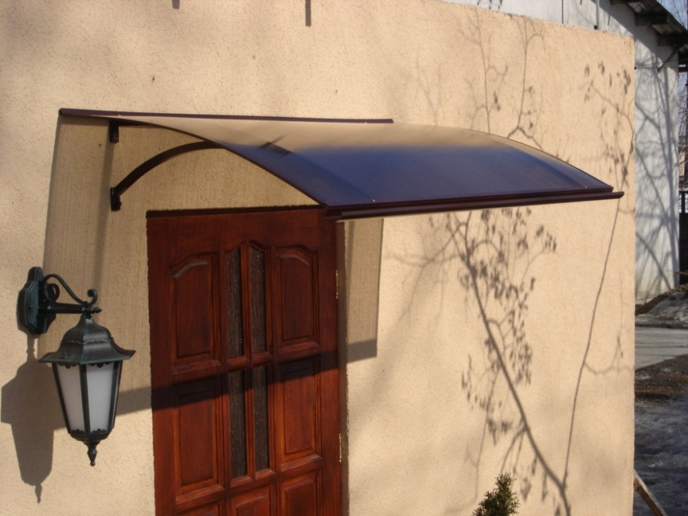 Stříška nad dveře vyrobená z práškově lakovaného hliníku. Na rozdíl od stříšek s plastovou konstrukcí hliníková konstrukce perfektně odolává vlivům počasí, i po letech je pevná a stabilní. V zimě mrazem nekřehne a ani na silném letním slunci nedochází ke změnám barvy. Stříška je zasklená komůrkovým polykarbonátem síly 4,5 mm s oboustranným UV filtrem (značka LEXAN® - vyrobeno v Rakousku). Jde o velmi kvalitní značkový polykarbonát od jednoho z nejlepších světových výrobců.