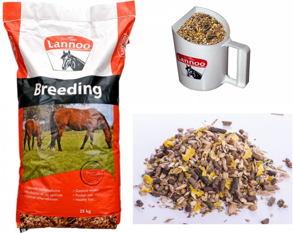 Krmná směs pro klisny v posledním stadiu březosti a v prvních měsících po porodu, vhodný též k odchovu hříbat. Použitelné pro kombinaci se senem. Mladé koně: 3 - 4,5 kg/ denně + minimálně 4 kg vlákniny, chovné klisny (500 kg): na konci gestace 5 kg / den, laktační klisny až 8 kg / den + dostatečné množství krmiva. Dodáváno v 25 kg pytlích SLOŽENÍ: Ječné vločky, kukuřičné vločky, pšeničné otruby, vojtěška, opékané sojové boby (GMO), ječný šrot, oves, špalda, ovesný šrot, melasa z cukrové třtiny, lněné vločky, lněná vláknina, soja (GMO), sušená dužnina z čekanky, sojový olej (GMO), řepkové semínko, kukuřice (DDGS), lněný olej, melasa z cukrové řepy, rohovník sušený, pivovarské kvasnice (yea-sacc), uhličitan sodný Číslo produktu: BE 6238 ANALÝZA Bílkoviny 14,15% Kalcium 1,27% Tuky 6,05% Fosfor 0,56% Cukry a škroby 31,70% Hořčík 0,38% Popeloviny 8,90% Sodík 0,61% Vláknina 9,00% Aditiva Vitamin A 15400,00 IE/kg Vitamin D3 1900,00 IE/kg Vitamin E 220,00 mg/kg Vitamin B1 2,00 mg/kg Vitamin B2 3,00 mg/kg Vitamin B3 4,00 mg/kg Vitamin B6 1,00 mg/kg Vitamin B12 0,01 mg/kg Biotin 200,00 mcg/kg Vitamin C 72,00 mg/kg Choline Chloride 235,00 mg/kg Foliumacid 1,20 mg/kg Niacinamide 10,00 mg/kg Železo 121,00 mg/kg Měď 33,00 mg/kg Zinek 121,00 mg/kg Mangan 121,00 mg/kg Jód 0,20 mg/kg Kobalt 0,20 mg/kg Selen 0,24 mg/kg Organická forma selenu 0,02 mg/kg Hydratované železo 4,00 mg/kg Hydratovaná měď 1,00 mg/kg Hydratovaný zinek 4,00 mg/kg Hydratovaný mangan 4,00 mg/kg